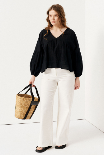46 Блузка: Длина изделия - 74.5см, Длина переда от высшей плечевой точки до низа - 75.5см, Длина рукава - 47.5см, Обхват шеи - 47см, Ширина плеча - 27.5см, Ширина по низу - 68см, Ширина под проймой - 65см, Ширина рукава - 21.3см;