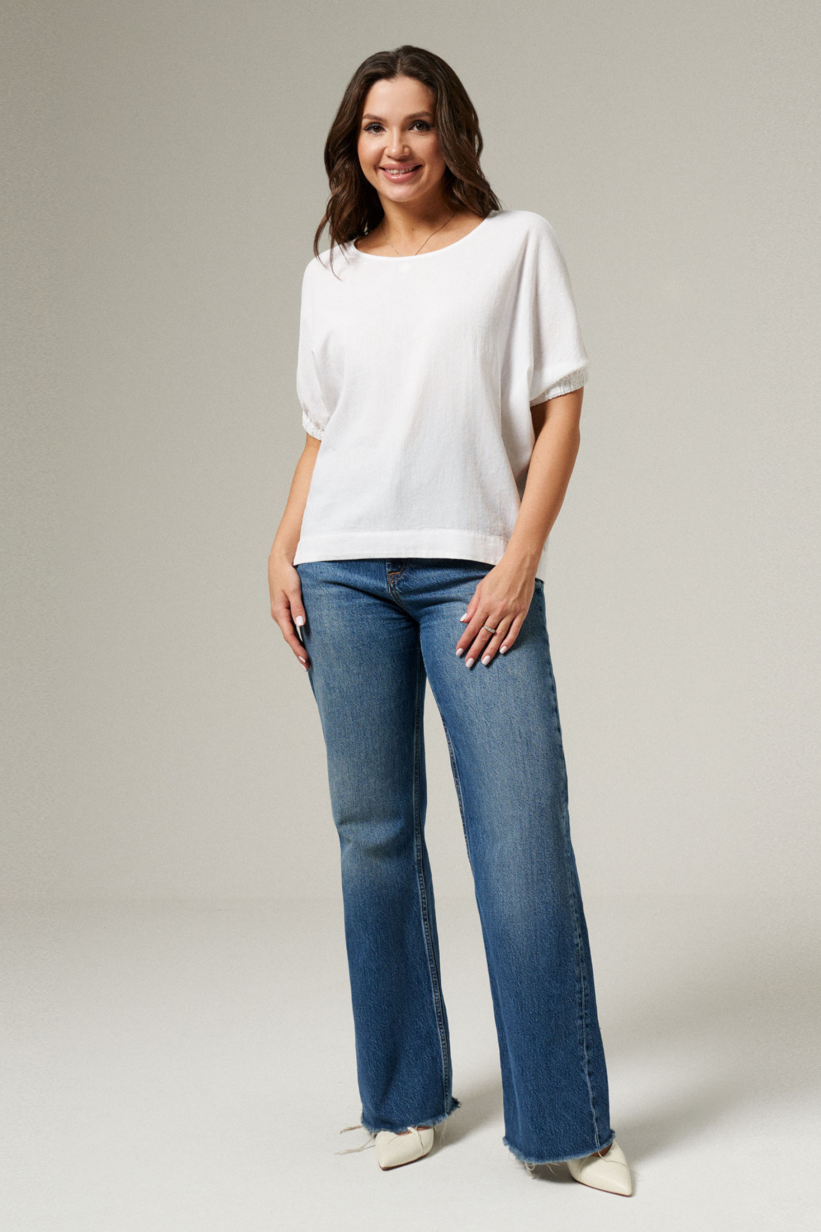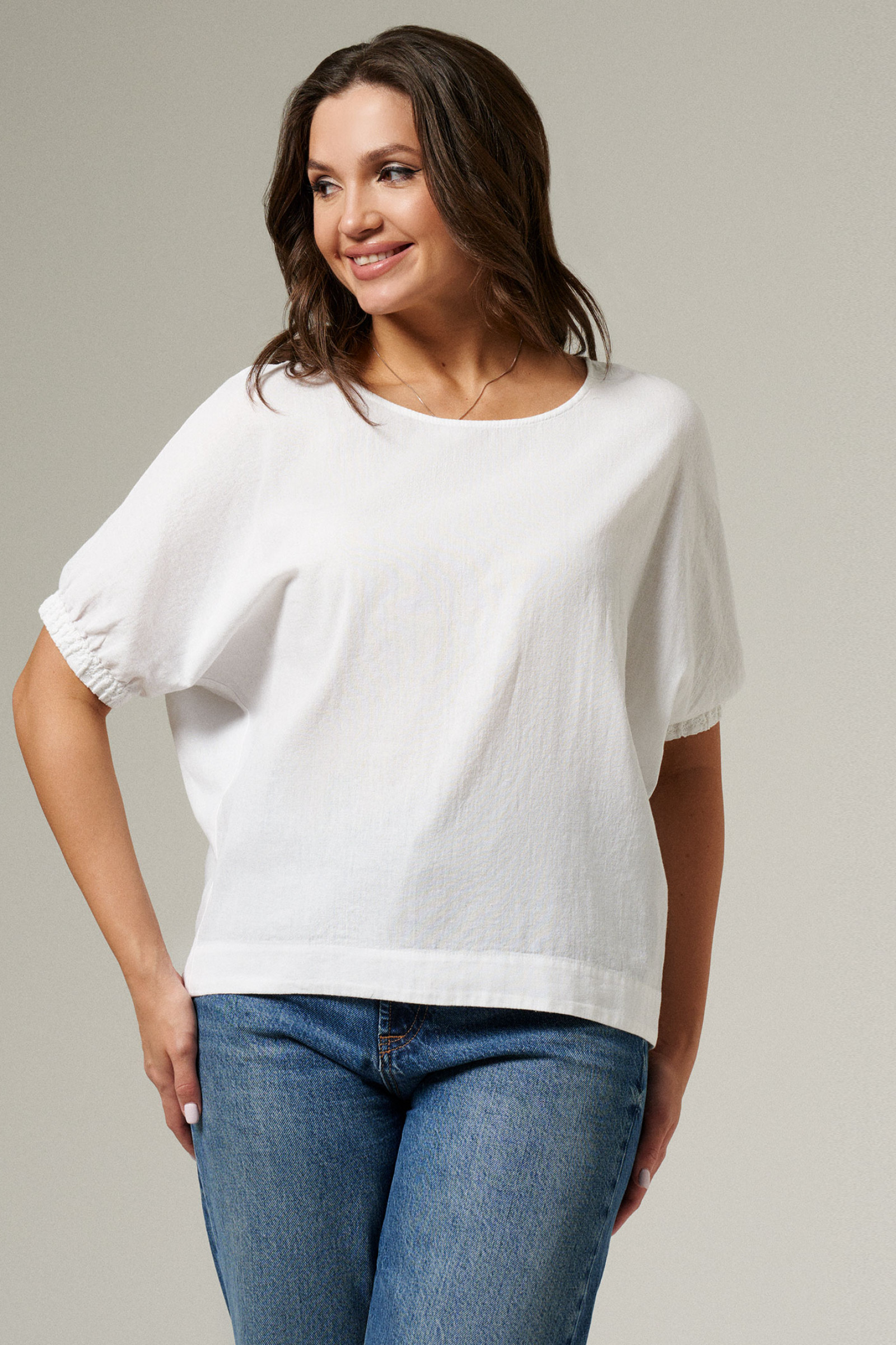 Блузка женская из хлопчатобумажной ткани для повседневной носки прямого силуэта. Рукава цельнокроеные, низ рукава на резинке, длина чуть выше локтя. Очень стильная и практичная блузка на каждый день, в ней вы будете чувствовать себя комфортно, а главное она отлично подчеркнет все ваши достоинства.