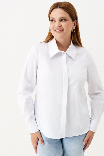 Блузка женская из смесовой ткани для повседневной носки. Блузка прямого силуэта, супатная застежка. Горловина обработана рубашечным воротником с отрезной стойкой. Низ рукава обработаны притачной манжетой, застежка на две обметанную петлю и две пуговицы. Стильная и очень удобная блузка станет вашим фаворитом на любой выход.