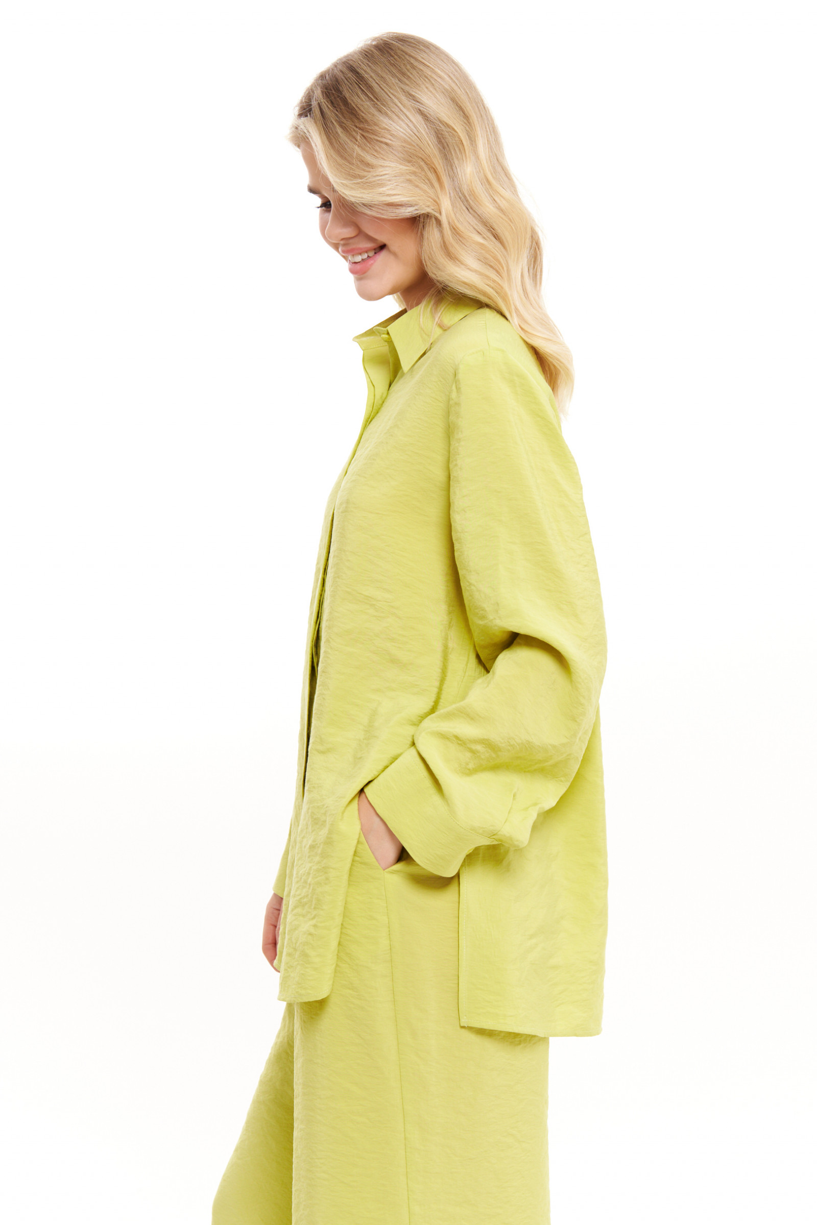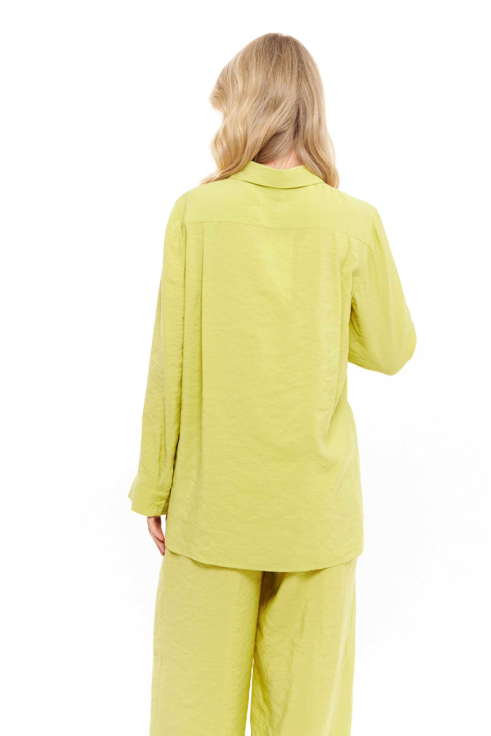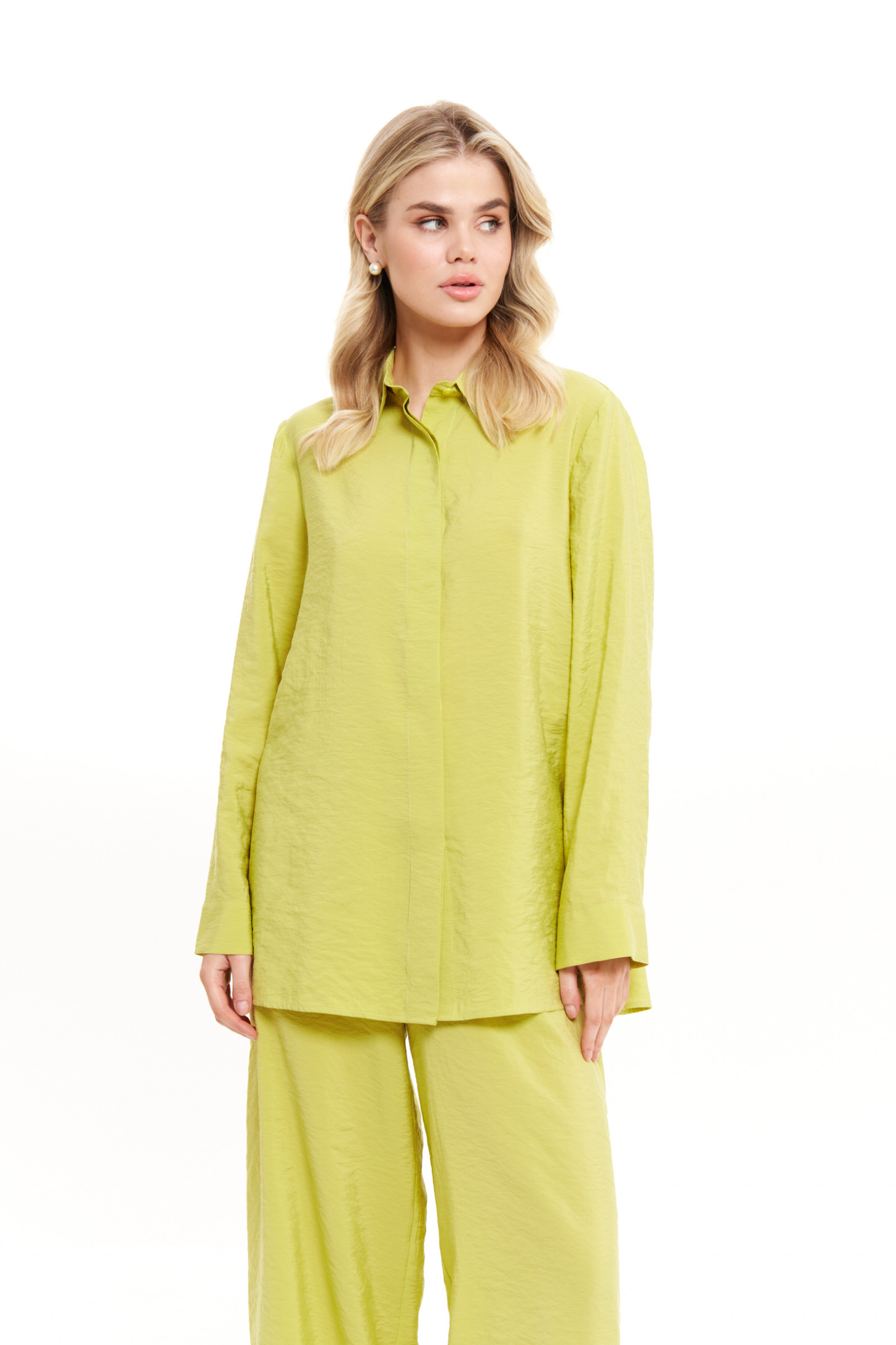 Женская классическая блузка из смесовой ткани — это универсальный элемент гардероба, который идеально подходит для создания как повседневного, так и офисного образа. Блузка выполнена в классическом стиле с прямым силуэтом, обеспечивающим свободный комфорт в течение всего дня. Элегантный рубашечный воротник с отрезной стойкой придаёт модели деловой акцент, а застёжка на пуговицы и аккуратные обметанные петли подчеркивают утончённость изделия. Спинка с кокеткой и двумя мягкими складками добавляет лёгкости и свободы движения, а боковые разрезы обеспечивают дополнительный комфорт. Длинные втачные рукава завершены манжетами на пуговицах, что делает модель нарядной и завершённой. Блузка представлена в стильномярком цвете, который легко сочетается с другими базовыми вещами гардероба. Она отлично подойдёт для весеннего и летнего сезона, позволяя чувствовать себя уверенно в любой ситуации — будь то деловая встреча, праздничное мероприятие или повседневная прогулка. Благодаря своему универсальному дизайну, блузка может стать как основой классического офисного комплекта, так и нарядным вариантом для вечернего выхода. Актуальна для женщин, ценящих комфорт, стиль и функциональность. Эта женская блузка — базовое решение для тех, кто хочет выглядеть стильно каждый день.