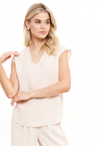 Блуза женская из лёгкой струящейся ткани для повседневной носки. Блуза прямого силуэта. Линия плеча спущена, переходящая в рукав. Центральная застежка на петли-пуговицы. Горловина оформлена воротником- стойкой. Длина до середины бёдер, низ ровный. Эта модель идеально сочетается со светлыми брюками, что делает ее неотъемлемой частью вашего гардероба. Блузка также подойдет и для офиса, а также как нарядный элемент для вечерних мероприятий.