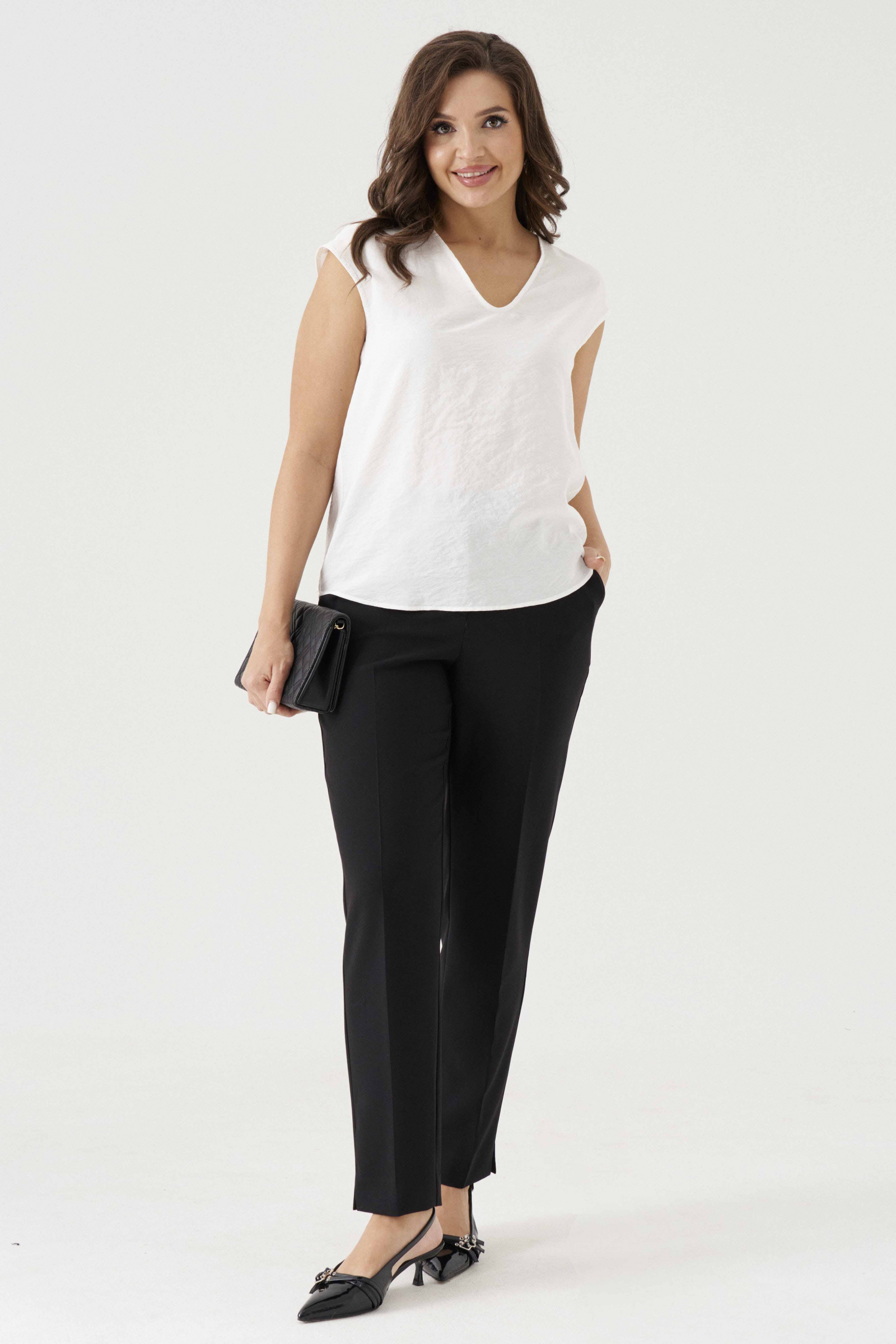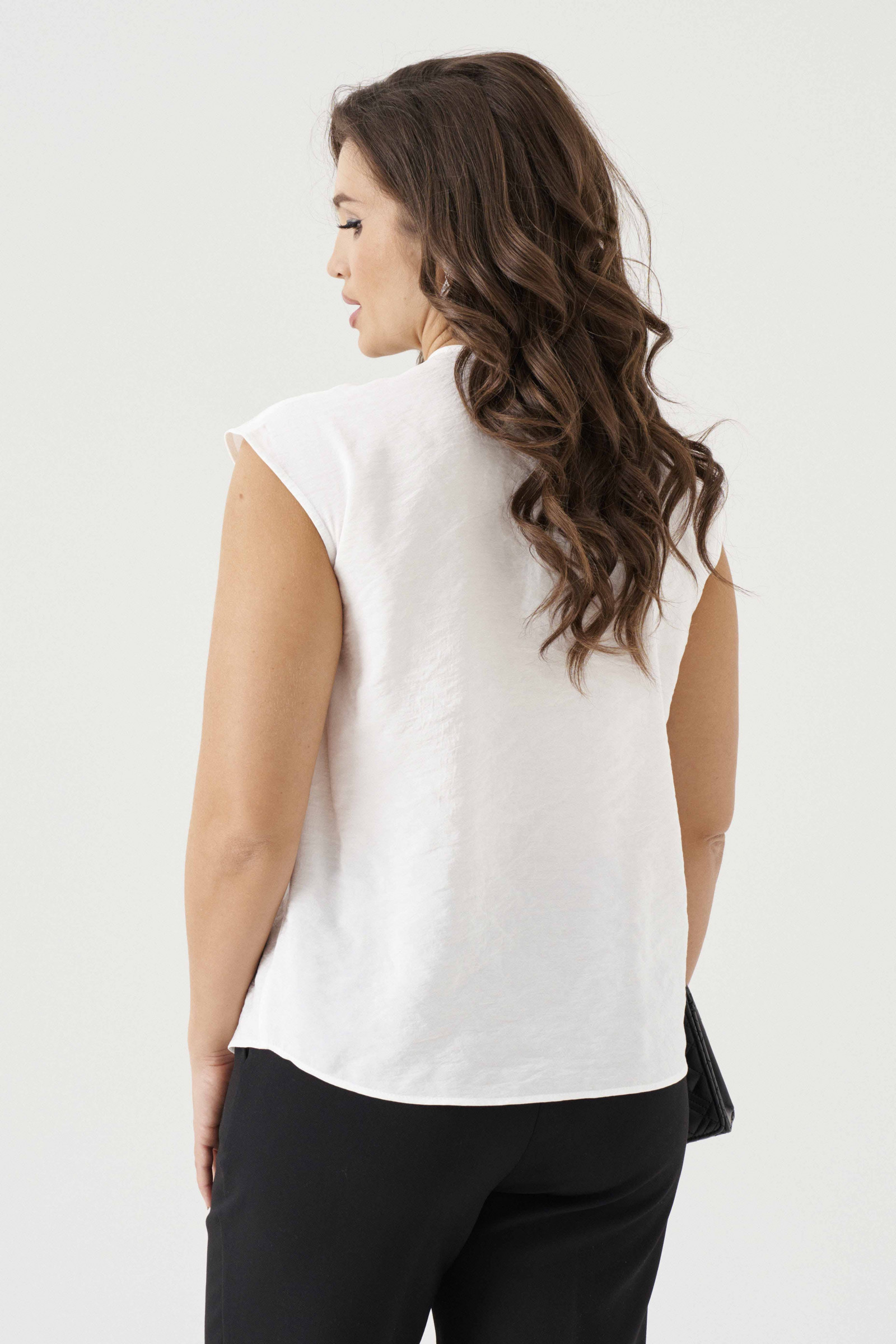 Базовый дизайн и нейтральные оттенки делают эту блузу женственной и универсальной, а отсутствие рукавов добавляет образу легкость. Это идеальный вариант для тех, кто ценит классический стиль, но хочет выглядеть свежо и современно.