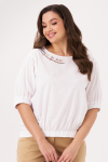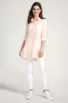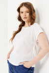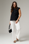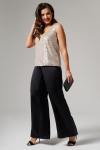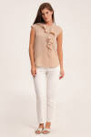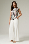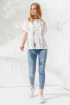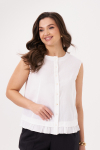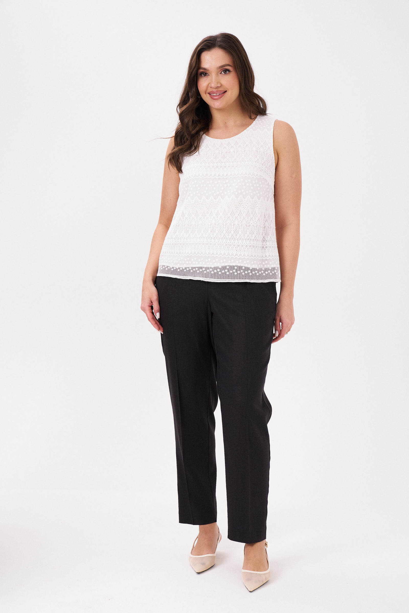 Блузка женская прямого силуэта из ткани в сетку с красивым узором. Перед имеет две6 нагрудные вытачки. Горловина округлая, чуть расширенная. Блузка без рукавов. Блузка на вискозной подкладке. Красивая модель блузки в элегантном молочном цвете, которая обязательно осчастливит вас своим внешним видом, а главное она идеальна будет на вас смотреться.