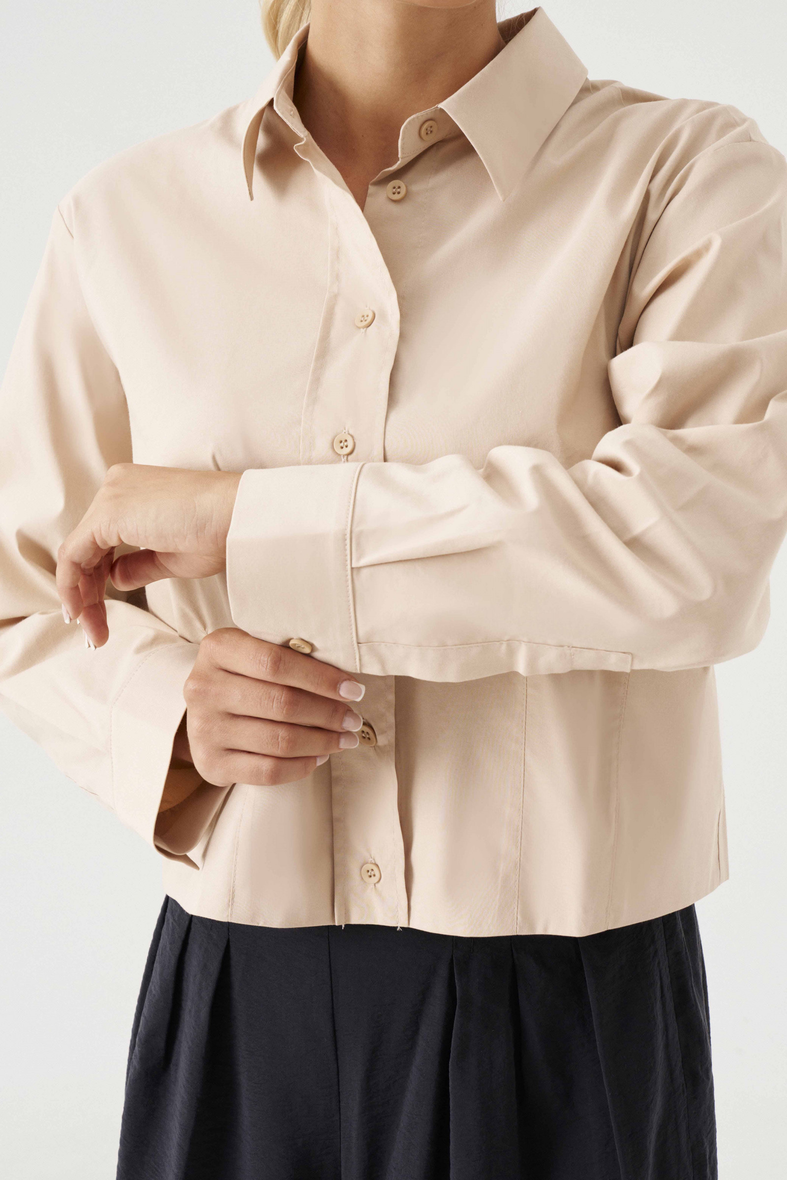Блузка женская из смесовой ткани для повседневной носки. Блузка полуприлегающего силуэта. По переду располагаются четыре талиевых вытачки, застежка на семь обметанных петель и семь пуговиц. По спинке имеются две талиевые вытачки. Горловина обработана рубашечным воротником с отрезной стойкой. Низ рукава обработана притачной манжетой, застежка на одну обметанную петлю и одну пуговицу. По низу изделия, по краю вытачек и по верхнему шву манжеты проложены отделочные строчки. Блузка станет идеальным вариантом для любой прогулки, а также разнообразит ваш образ стильным фасоном.