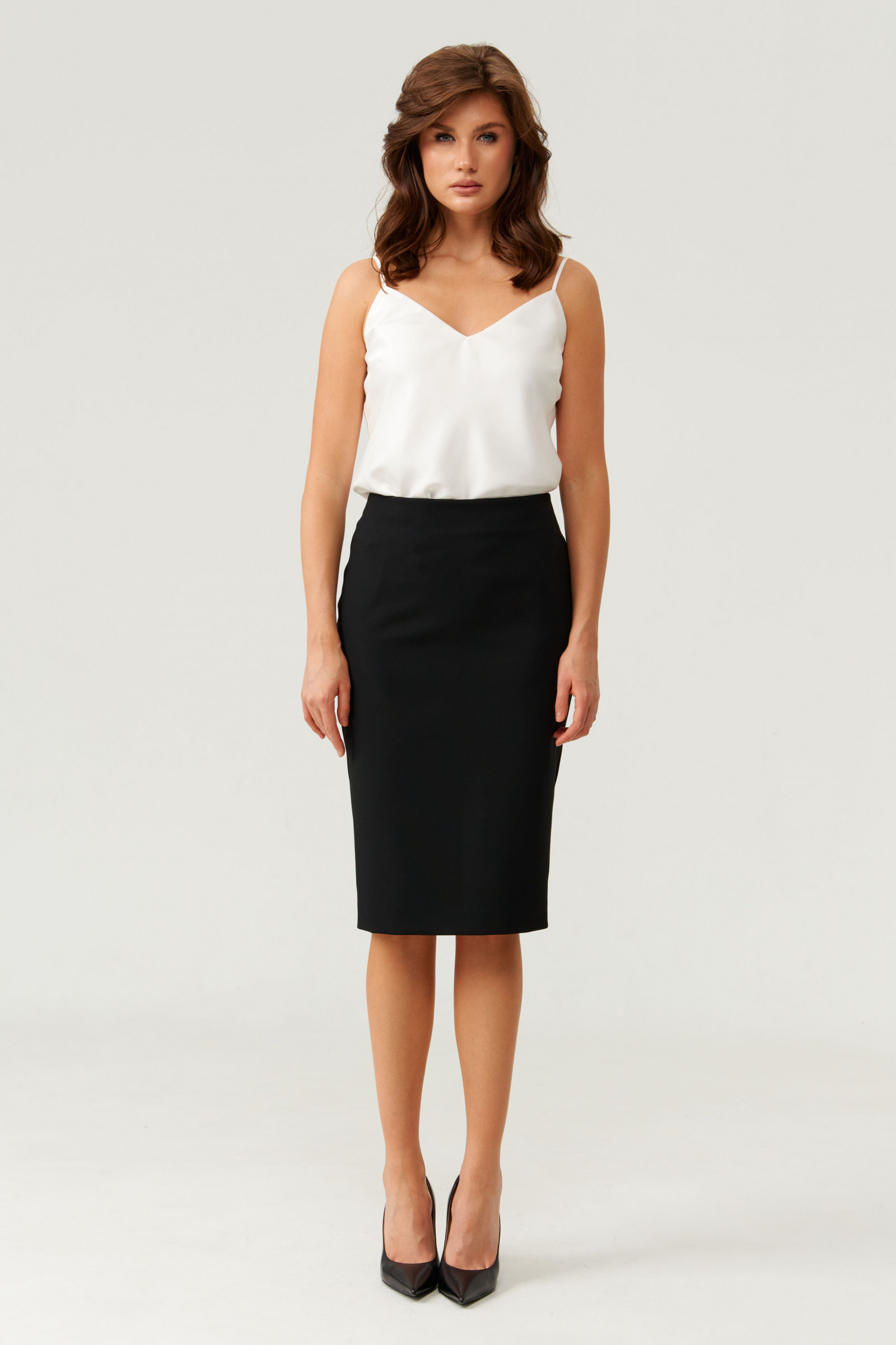 Блузка женская из атласной ткани для повседневной носки. Перед имеет две нагрудные вытачки. Горловина V- образная. Блузка на регулирующихся бретелях. Красивая и элегантная блузка, которая пойдет под любой ваш образ. Блузка очень комфортная в носке.