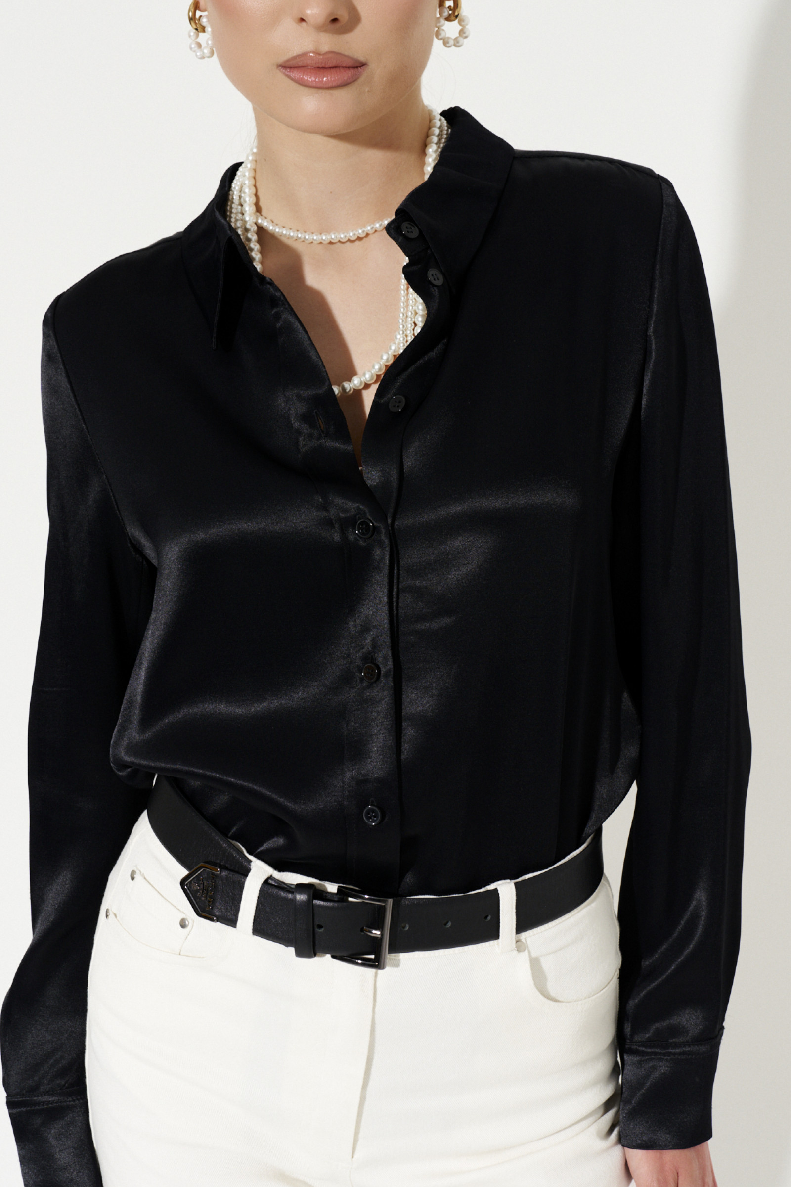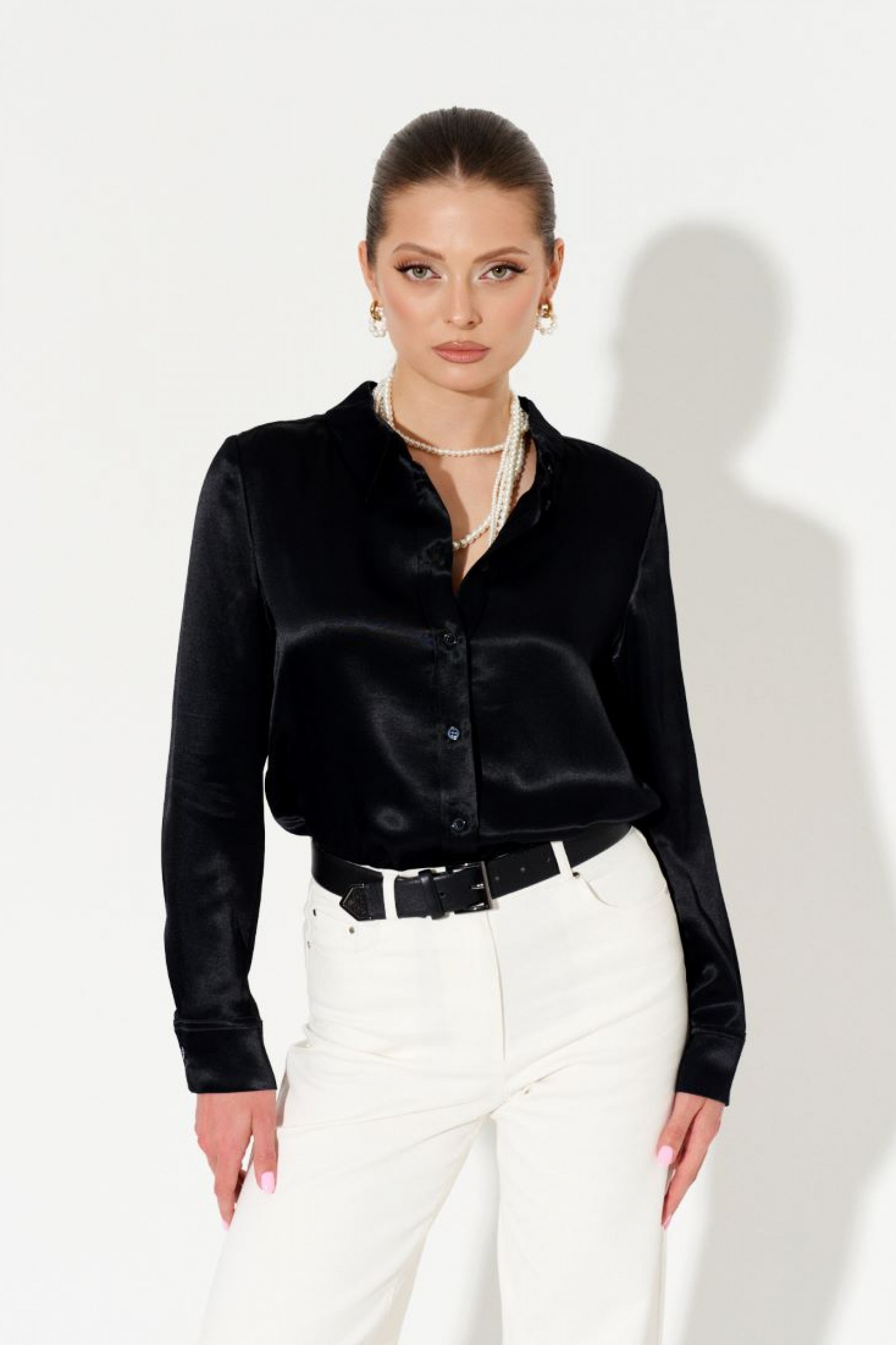 Блузка женская из вискозной ткани для повседневной носки. Блузка прямого силуэта. Застежка на девять обметанных петель и девять пуговиц. По спинке имеется кокетка. Горловина обработана рубашечным воротником с отрезной стойкой. Низ рукава обработана притачной манжетой, застежка на две обметанные петли и две пуговицы. Блузка станет идеальным вариантом для любой прогулки, а также разнообразит ваш образ стильным фасоном.