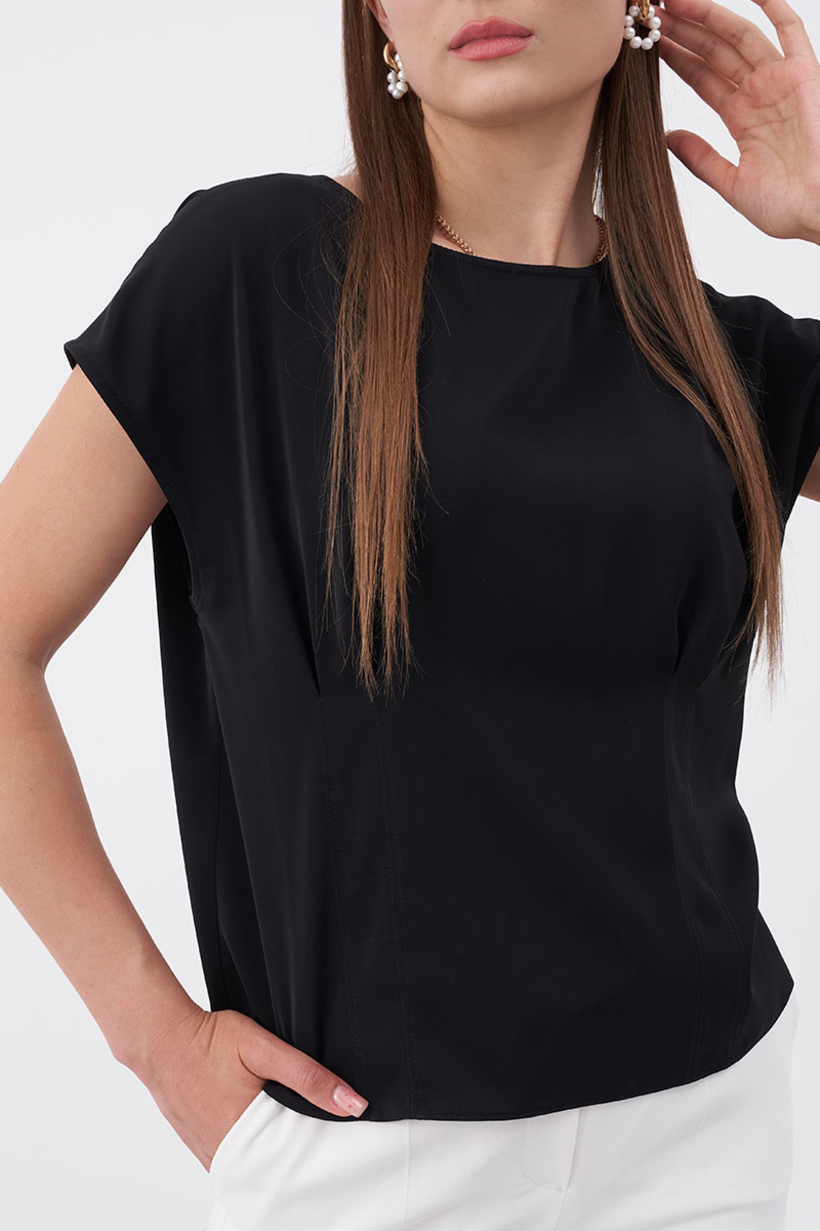 Эта блузка со спущенными рукавами и фигурными вытачками по талии из струящейся ткани - идеальное дополнение для вашего гардероба! Она является универсальной базой, которая подойдет под любой образ.