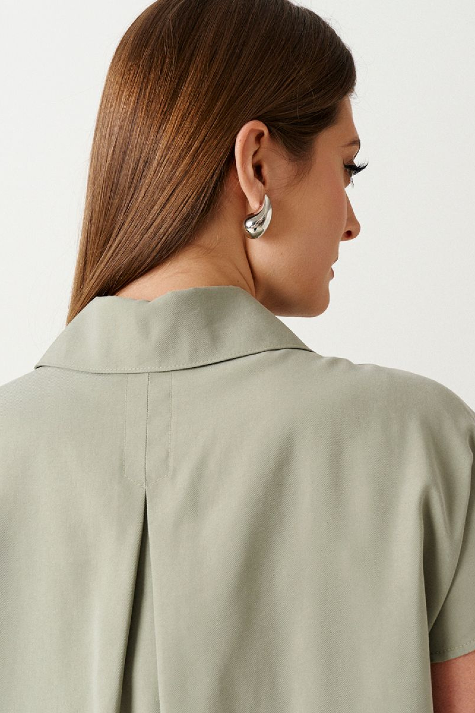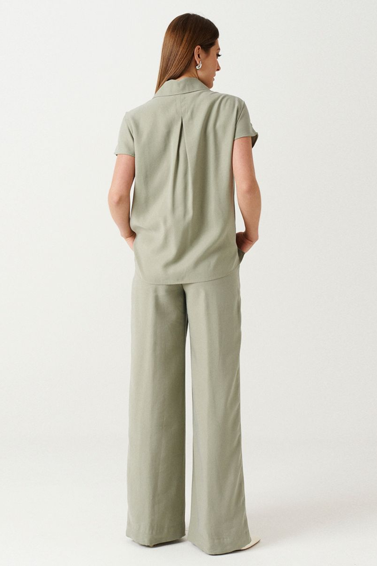 Блуза женская из улучшенной вискозы--модала для повседневной носки. Блуза прямого силуэта без рукавов с фронтальной застежкой на пуговицы. Горловина оформлена воротником-стойкой. По переду накладной карман. По спинке от горловины встречная складка. Разрезы от низа блузы в боковых швах. Длина изделия классическая.