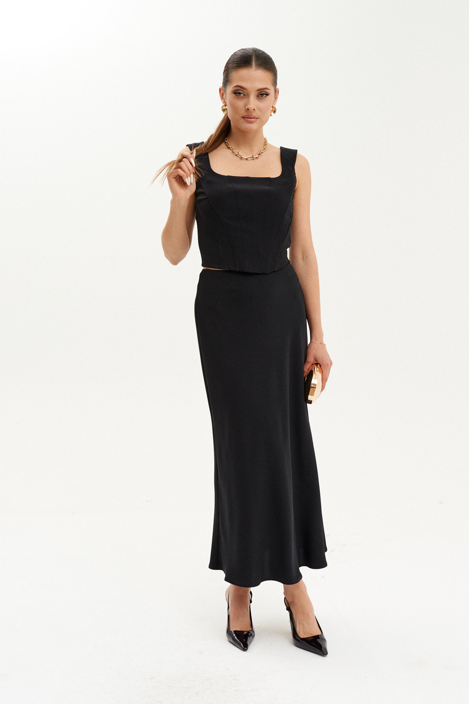 Корсет женский из костюмной ткани на подкладке для повседневной и торжественной носки прилегающего силуэта. Корсет с регилином «китовый ус» что содействует подержанию красивой формы. По переду имеются вертикальные рельефы с вставленным регилином. Спинка имеет вертикальные рельефы с вставленным регилином. Горловина V- образная. Корсет на бретелях, имеется потайная застежка-молния. Очень элегантный и модный корсет в котором вы всегда будете неотразимы, а главное он будет смотреться идеально на любой фигуре.