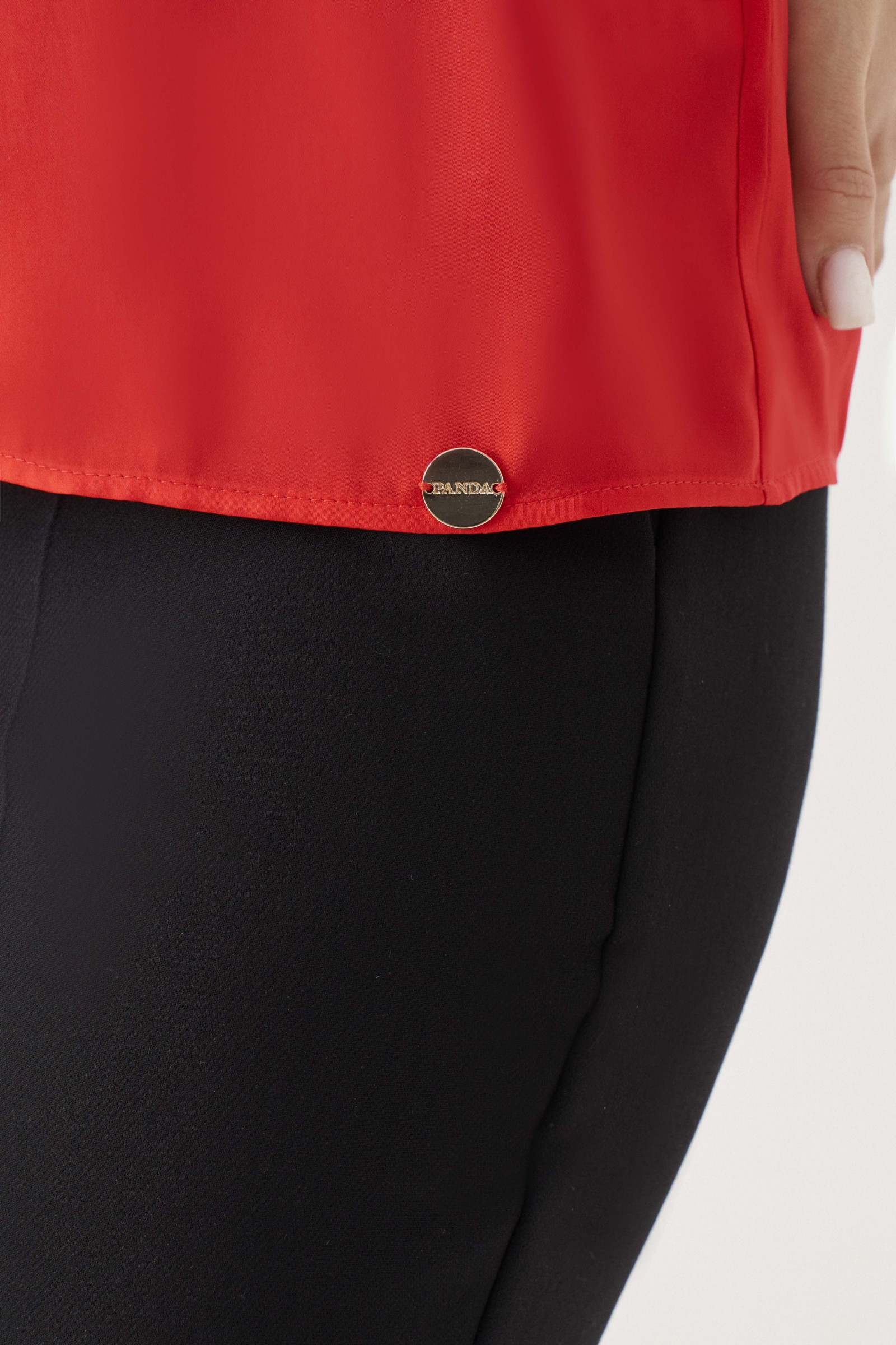 "Элегантная базовая блузка - неотъемлемая вещь офисного гардероба, которая пригодна для повседневной носки. Однотонная расцветка позволяет сочетать блузку с классическими черными или яркими брюками, джинсами и юбками.