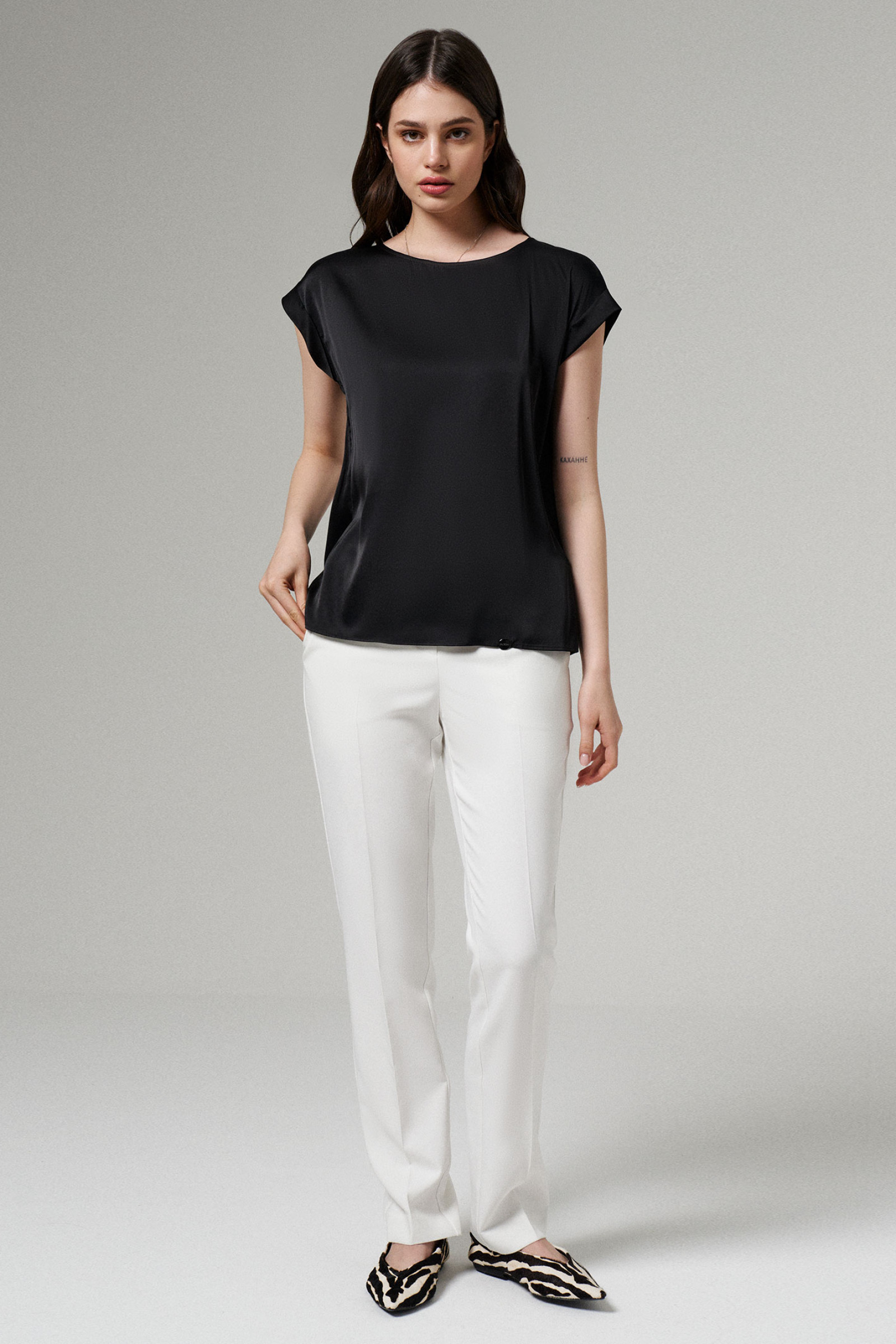 Если вы в поисках базовой вещи для своего капсульного гардероба, блузка женская с коротким рукавом станет его уместным дополнением. Она отлично смотрится в офисных, повседневных, торжественных, вечерних аутфитах. Блузка трикотажная женская нейтрального цвета гармонично сочетается с юбками, брюками, джинсами любых оттенков. Ее можно носить на работу, учебу, деловую встречу. Однотонная женская блузка представлена в широком диапазоне размеров – от 42 до 52.