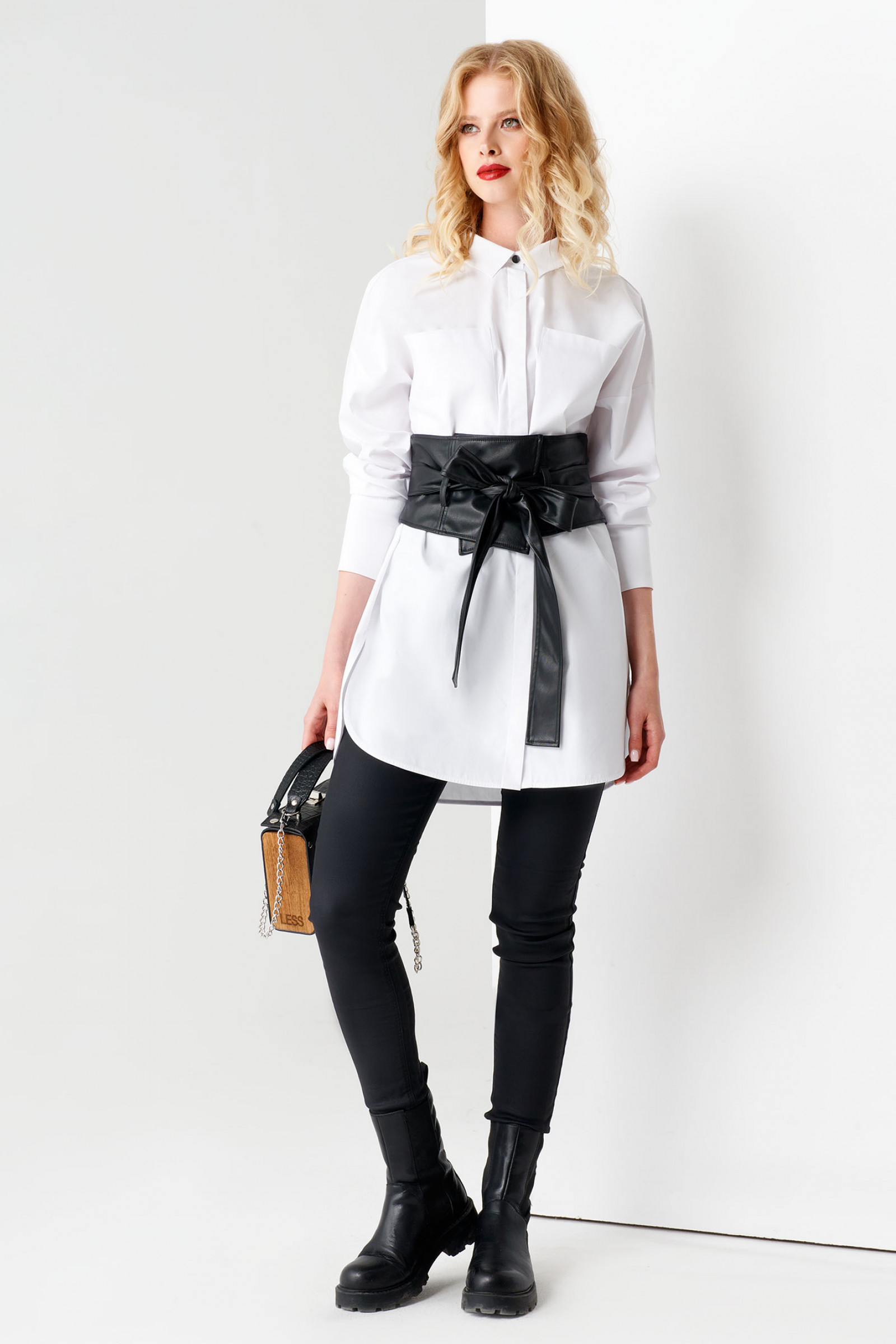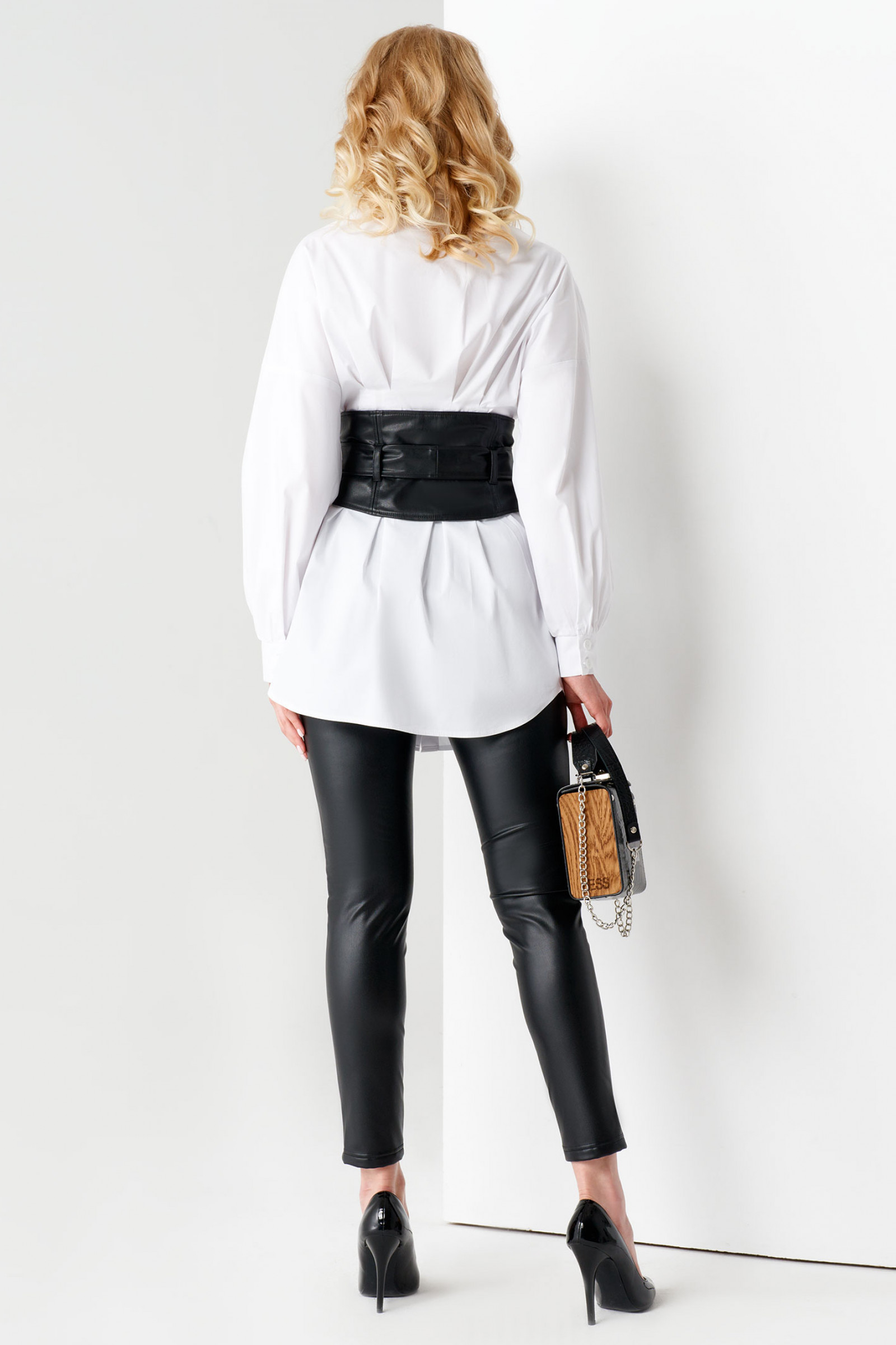 Вы можете купить женскую блузку в комплекте с трендовым широким корсетом-поясом из экокожи для создания стильного эффектного образа.