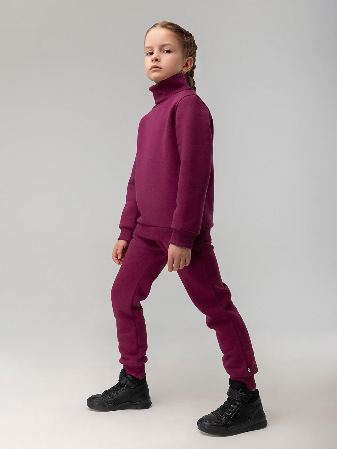 Детский костюм. Толстовка с воротником-стойка, рукава на манжетах, полуприлегающий покрой. Брюки- джоггеры, детали: пояс - эластичная резинка, низ изделия- манжеты. Состав: футер трехнитка с начесом 80% хлопок 20% полиэстер