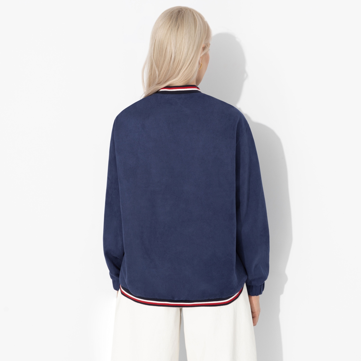 Она надела синий замшевый бомбер ЧАРУТТИ в день, когда утренний воздух уже стал прохладным. Замша, отливающая бархатным блеском, хранила тепло её уверенных движений. День был соткан из решительных рукопожатий и лёгких улыбок. И теперь, чувствуя приятную усталость, она закутывалась в его мягкость, словно в объятия. Бомбер классического кроя. Изделие застегивается на крупные пуговицы. Подол и ворот бомбера сделаны из трикотажной резинки в контрастных цветах. Рука оформлены широкой срытой резинкой. Бомбер слегка удлинен. Изделие с карманами.