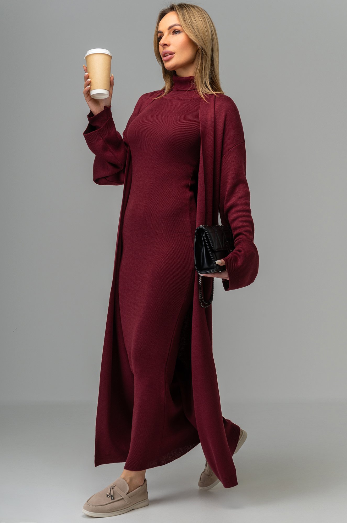 Почувствуйте элегантность и утонченнос..показатьть с женским комплектом двойка! А благородный бордовый цвет станет вашим изысканным спутником в любой праздничной обстановке. Платье и кардиган создают гармоничную пару, прекрасно дополняя друг друга, и делают образ цельным и завершённым.