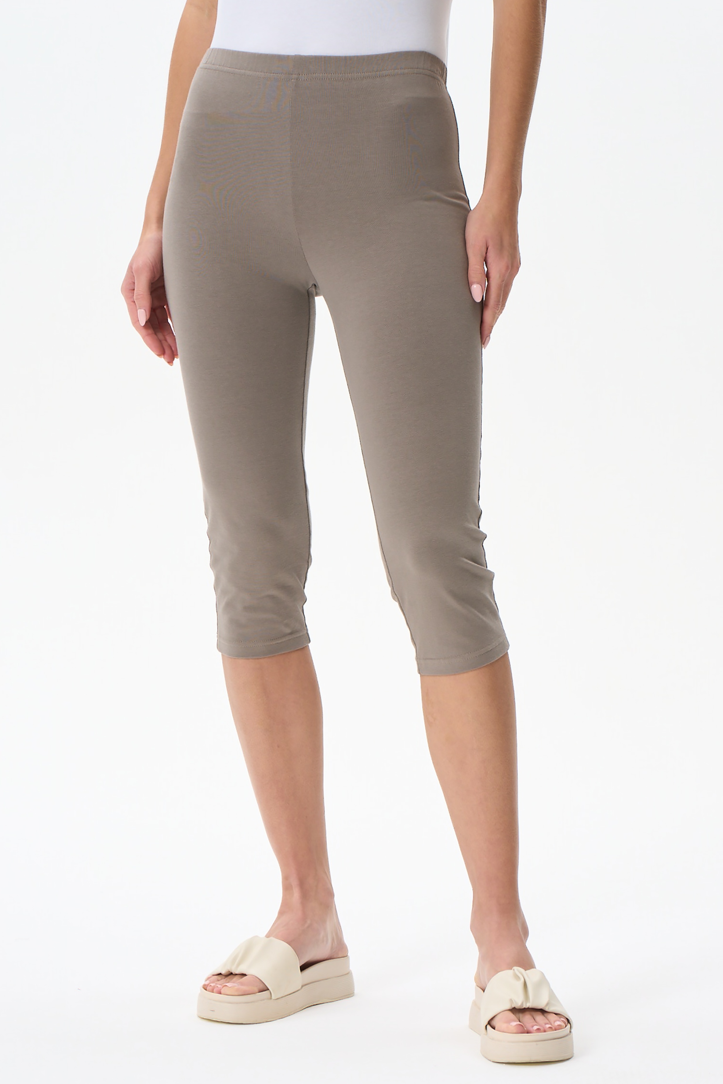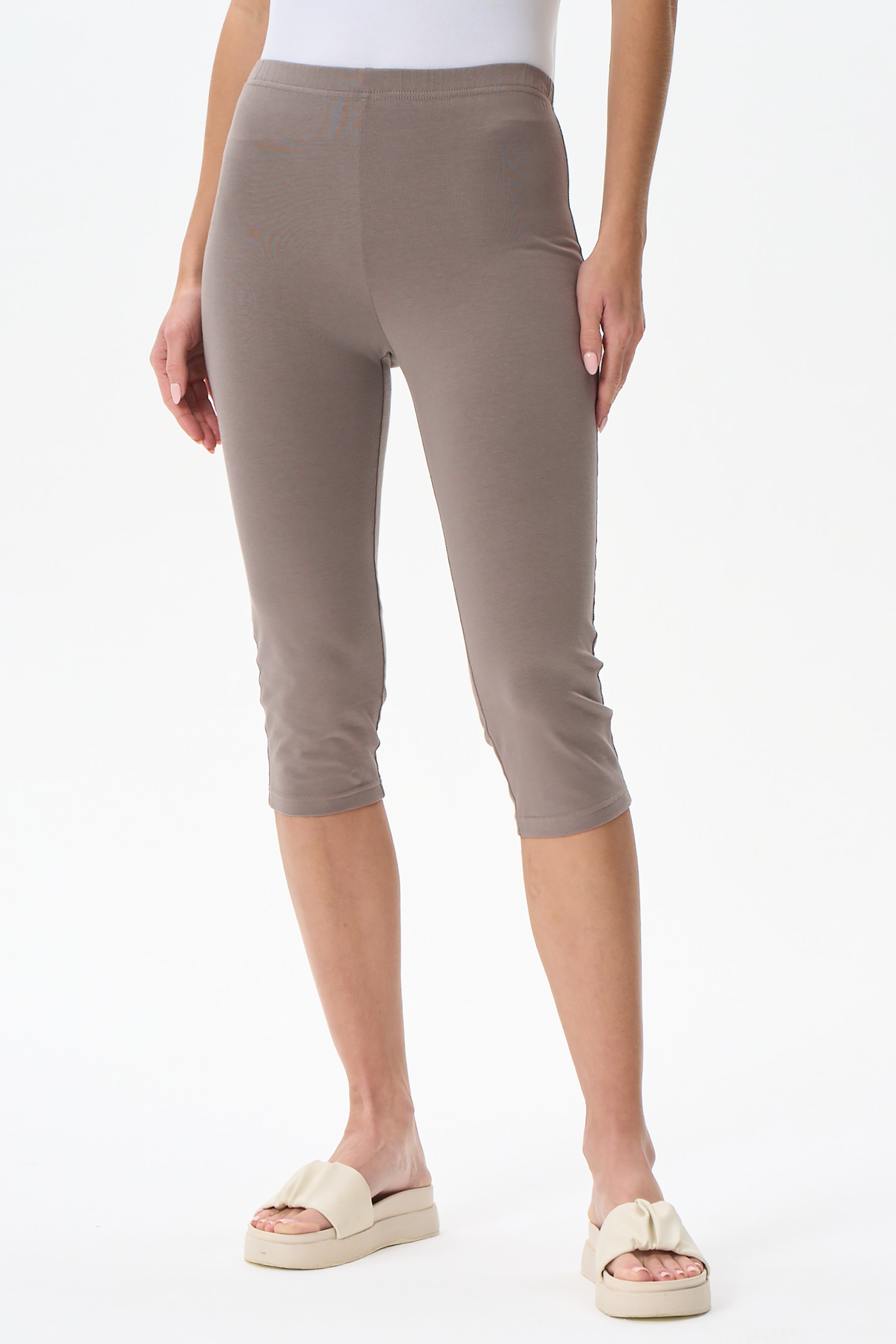 92% хлопок/ 8% эластан Комфортные облегающие бриджи выполнены из хлопкового трикотажного полотна с эластаном. Пояс с эластичной лентой внутри. Рост модели 175 см.