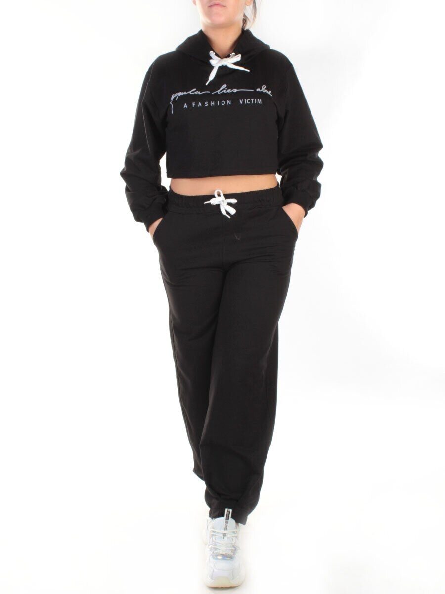 Y316 BLACK Спортивный костюм женский (100% хлопок)