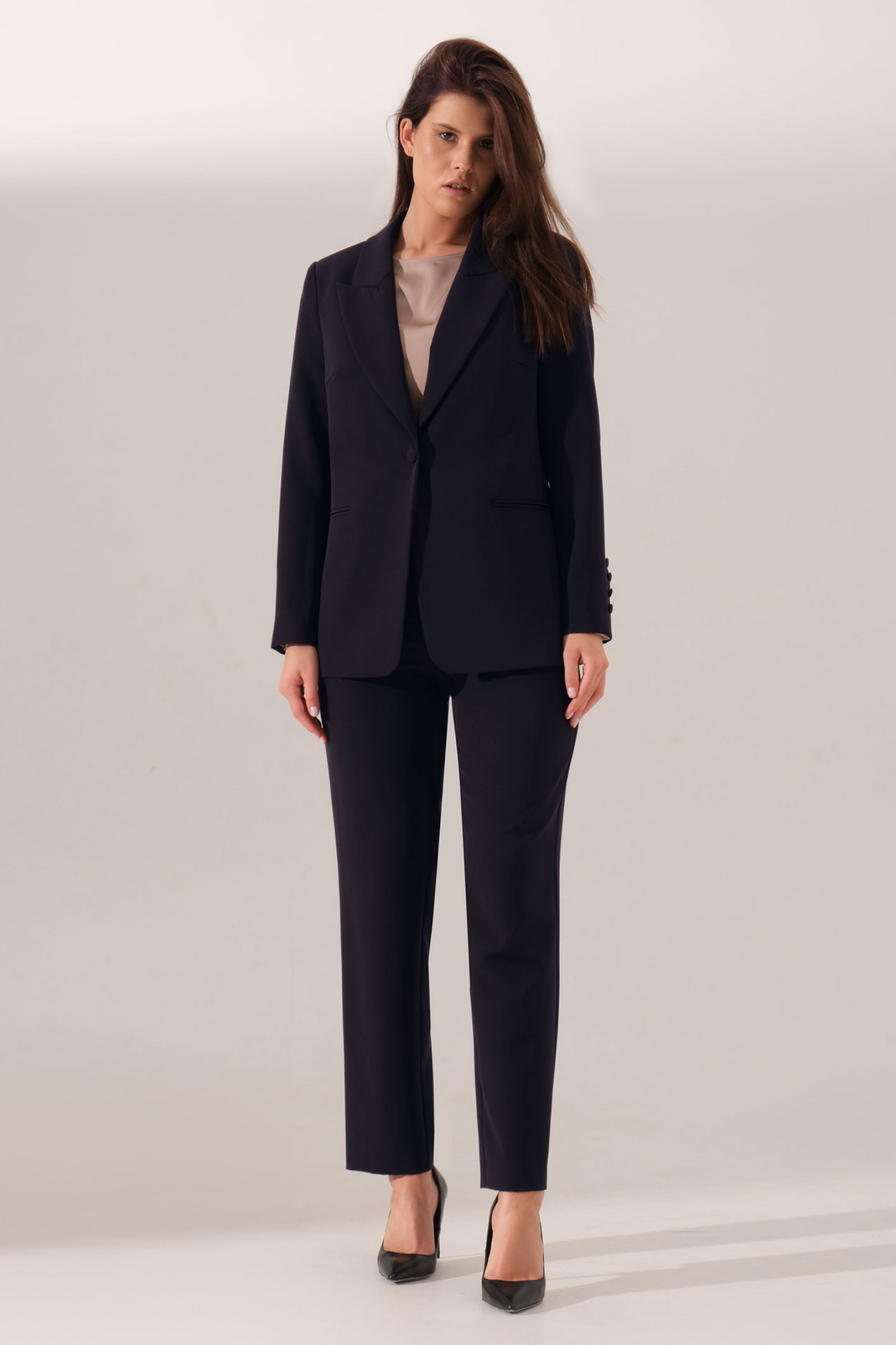 Состав: Жакет: Полиэстер 94%; эластан 6%.; Брюки: Полиэстер 94%; эластан 6%.; Подкладка: Полиэстер/ polyester 100%