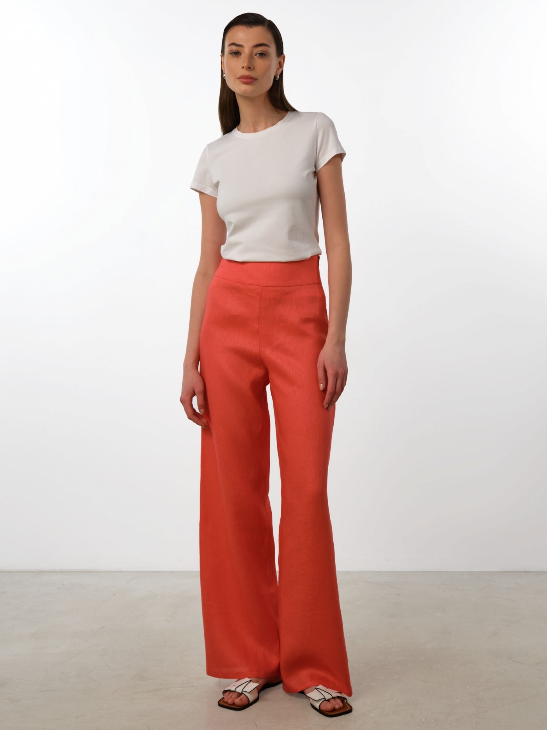 Стильные брюки прямого свободного кроя в пижамном стиле станут одной из самых удобных вещей весенне-летнего гардероба. Выполнены из легкой и мягкой смесовой ткани с добавлением отборного льна. Благодаря такому составу дарят прохладу и комфорт в жаркие дни. У модели отрезной пояс со шлевками, боковые карманы, декоративные задние карманы с листочкой. Резинка в задней части пояса обеспечивает оптимальную посадку. Брюки застегиваются на потайную прозрачную пуговицу, два металлических крючка и нейлоновую молнию в тон. Два универсальных цвета: бежевый и мятный. 100% лен
