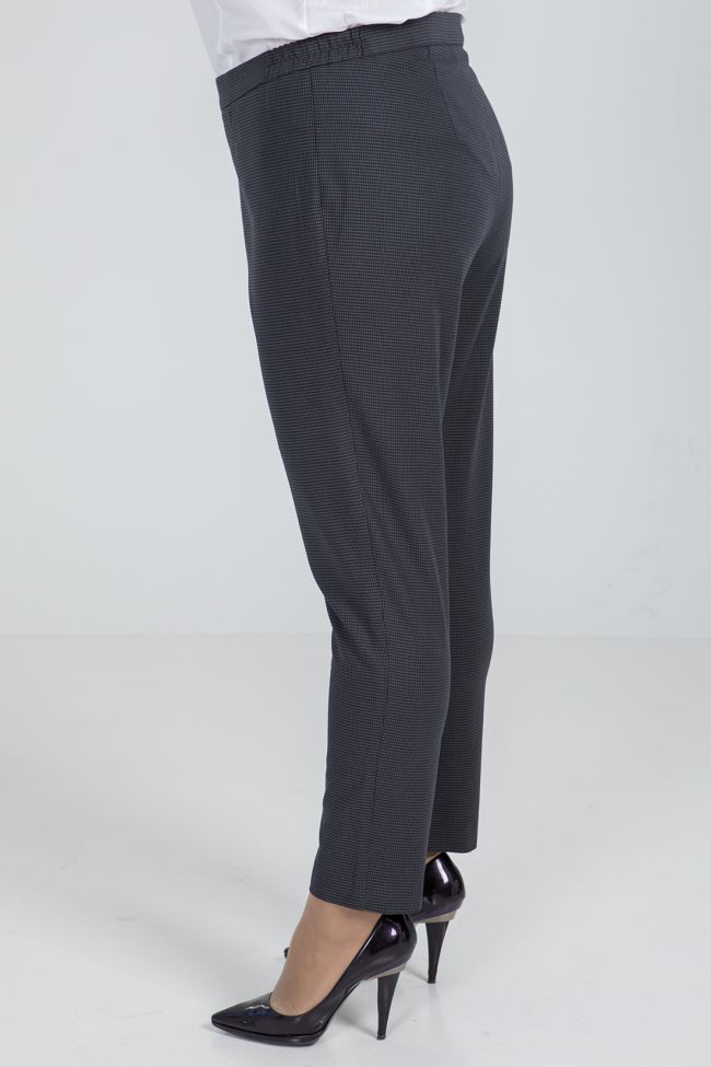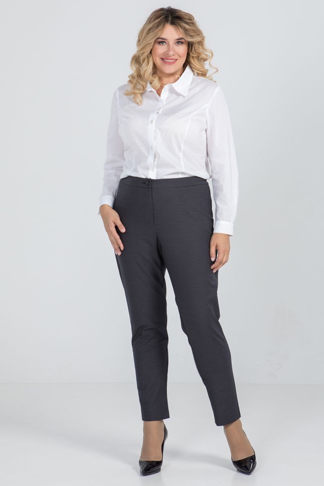 темно-серый Брюки полуприлегающего силуэта из костюмной ткани. Модель с комфортной высокой посадкой на талии. Верх с комбинированным  поясом, дополнен резинкой по бокам. Центр переда с застежкой на петлю-пуговицу и молнию. Низ зауженный.