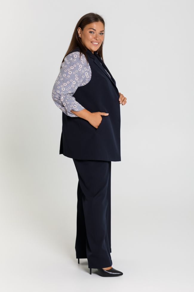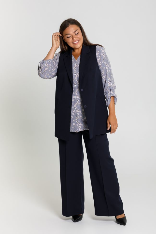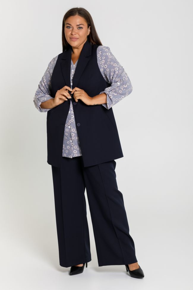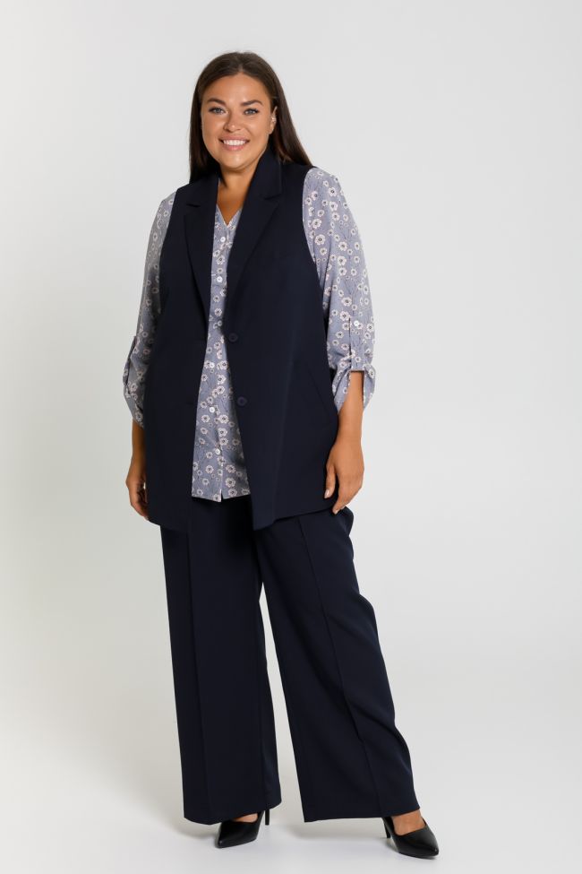 синий Свободные брюки палаццо из из костюмной ткани "Барби босс", представляют собой гармоничное сочетание традиционного стиля и модных тенденций. Брюки с высокой посадкой на комбинированном поясе, с застежкой на тесьму - молнию и пуговицу. что позволяет корректировать посадку. Брюки идеально подойдут для осенних и весенних месяцев. Эта модель поможет вам создать не только праздничный, но и стильный образ на каждый день. Хороший крой позволяет учитывать все особенности фигуры - скрывает недостатки и подчеркивает достоинства, обеспечивает комфорт, свободу движений, идеальную посадку и придает фигуре стройность.