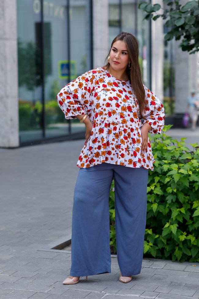 деним Свободные брюки из "дышащей" штапельной ткани прямого силуэта. Модель с комфортной высокой посадкой на талии.  По переду брюки с наклонными карманами. Верх с эластичным поясом. Отличный вариант для жаркой погоды.