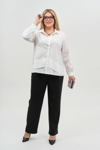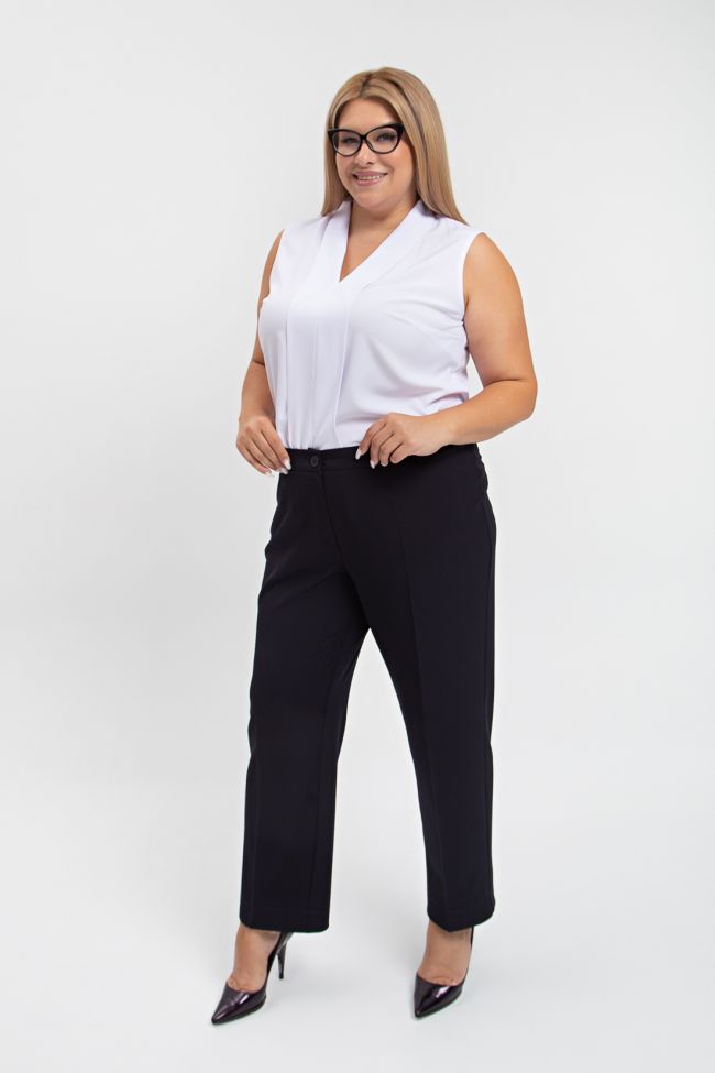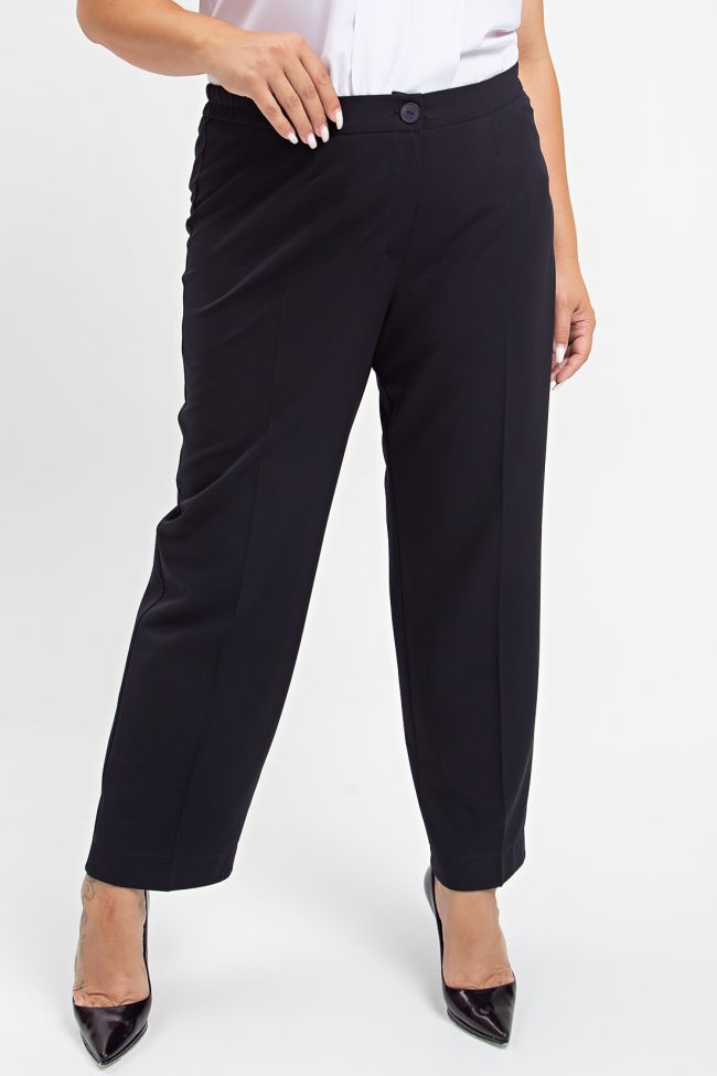 темно-синий Классические прямые брюки со стрелками  из джерси.  Брюки с высокой посадкой, на комбинированном поясе, с застежкой на тесьму - молнию и пуговицу. Замечательный выбор для ценителей стиля и комфорта. Полный комплект модели составит блузка арт:1403