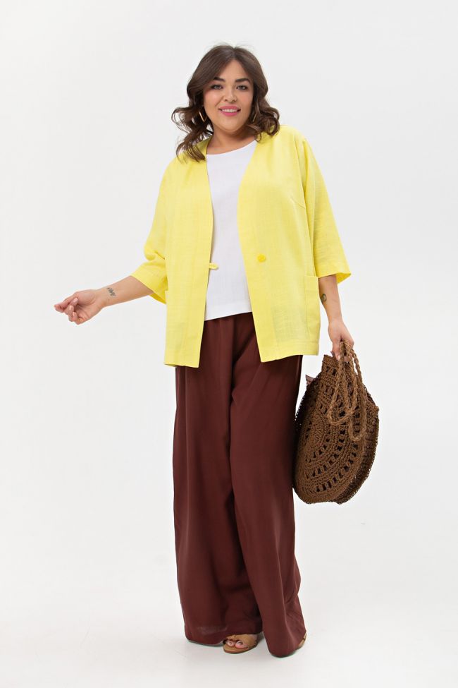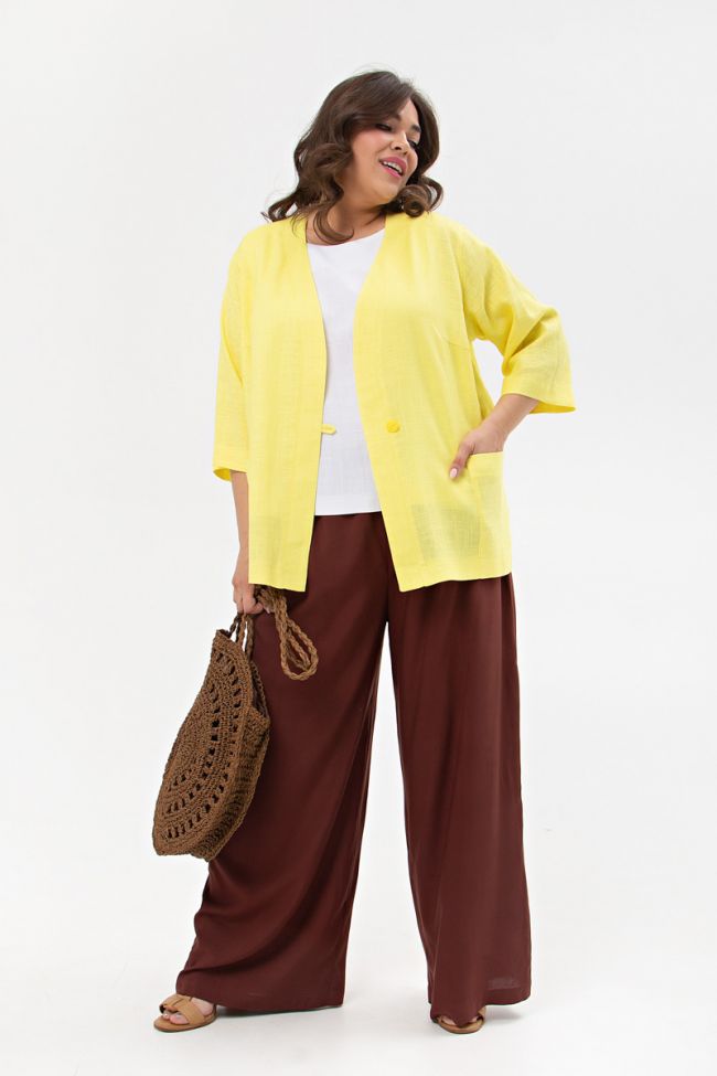 коричневый Свободные брюки из "дышащей" штапельной ткани прямого силуэта. Модель с комфортной высокой посадкой на талии. Верх с эластичным поясом. Отличный вариант для жаркой погоды.