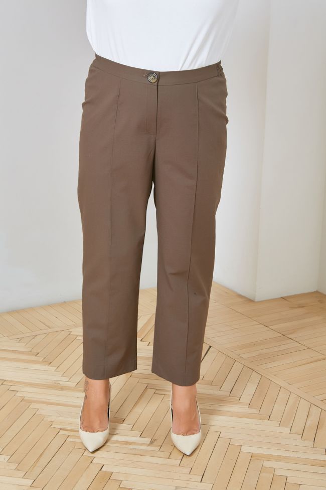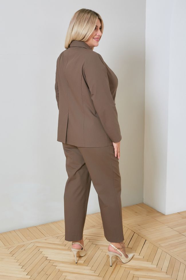темно-коричневый Стильные прямые брюки со стрелками, выполнены из льняной  ткани, с высокой посадкой по фигуре. Модель на комбинированном поясе, с застежкой на  молнию и пуговицу. Отличный вариант для стильного повседневного гардероба. Длина изделия по внутренему шву 74,5 см. Полный комплект модели составит жакет Арт.1356.