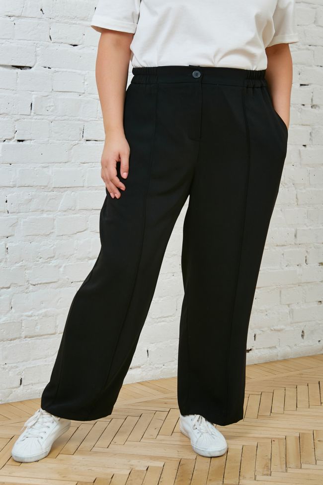 черный Стильные прямые брюки со стрелками из костюмной ткани - отлично дополнят Ваш гардероб. Модель с высокой посадкой, на комбинированном поясе, с застежкой на тесьму - молнию и пуговицу.  В боковых швах удобные карманы. Отличный вариант для дополнения повседневного и офисного гардероба.
