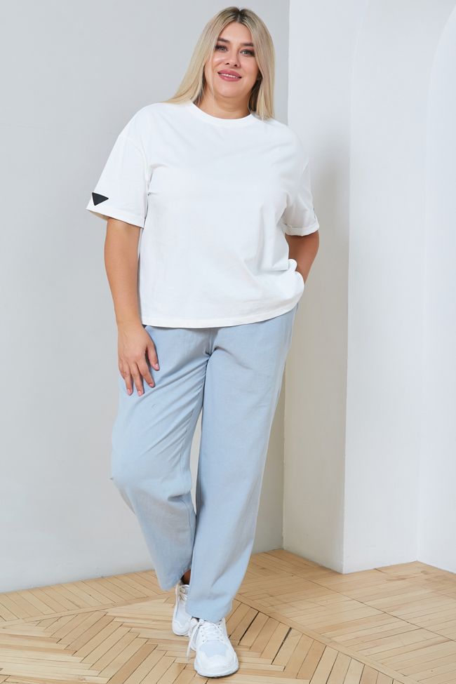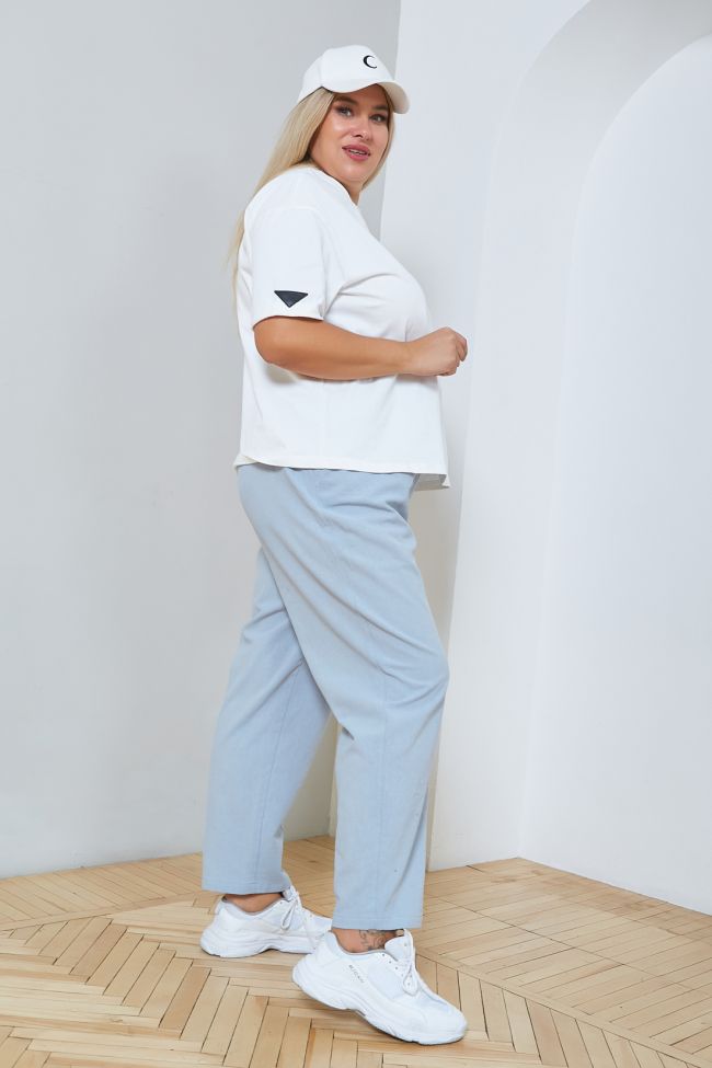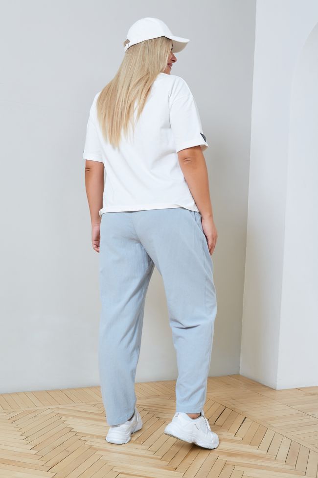голубой Эффектные брюки "чинос" свободного силуэта укороченной длины. Выполнены из хлопковой ткани с добавлением эластана. Модель с комфортной высокой посадкой и комбинированным поясом, с застежкой на тесьму-молнию и пуговицу. По переду удобные наклонные карманы с листочкой. Модель составит гармоничный комплект с однотонными и принтованными топами и блузами. Отличный вариант для стильного повседневного гардероба.
