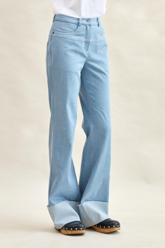 - застежка спереди на молнию и кнопку на притачном поясе;