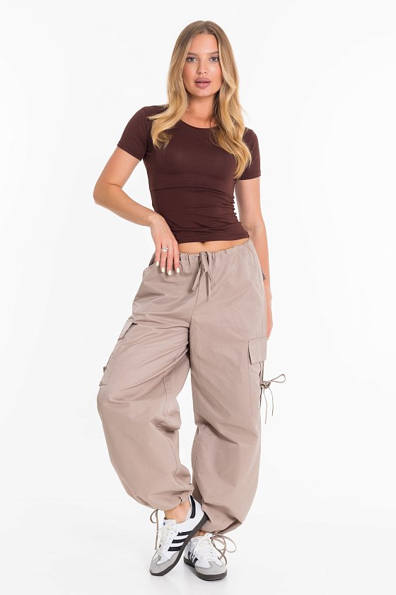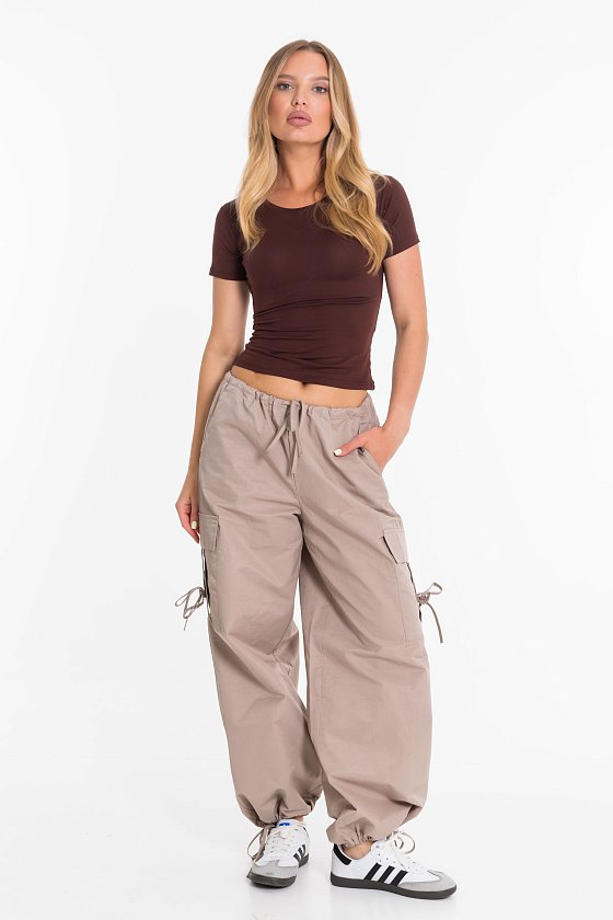 Женские брюки-карго из плащевой ткани сочетают в себе практичность и современный стиль. Модель свободного кроя с регулируемым поясом на шнуре обеспечивает удобную посадку и не сковывает движений. Прочное и легкое плащевое полотно дарит комфорт в течение всего дня, а функциональный дизайн с множеством карманов и стильными затяжками позволяет легко сочетать брюки как с объемными худи и кроссовками, так и с облегающими топами и кедами. Отличный вариант для повседневных уличных образов.