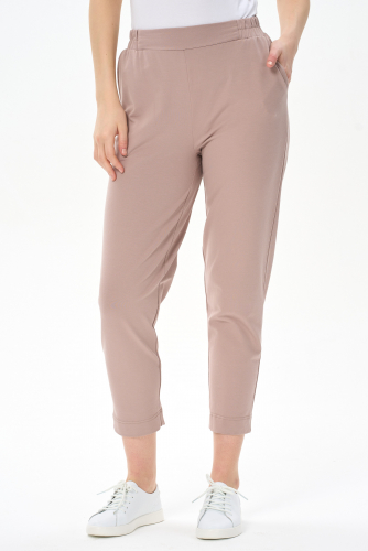 Повседневные брюки-бананы из хлопкового футера 2х нитки (без начеса). Модель с карманами. Пояс с планкой и эластичной лентой внутри. Длина брюк регулируется отворотами. Рост модели 177см.