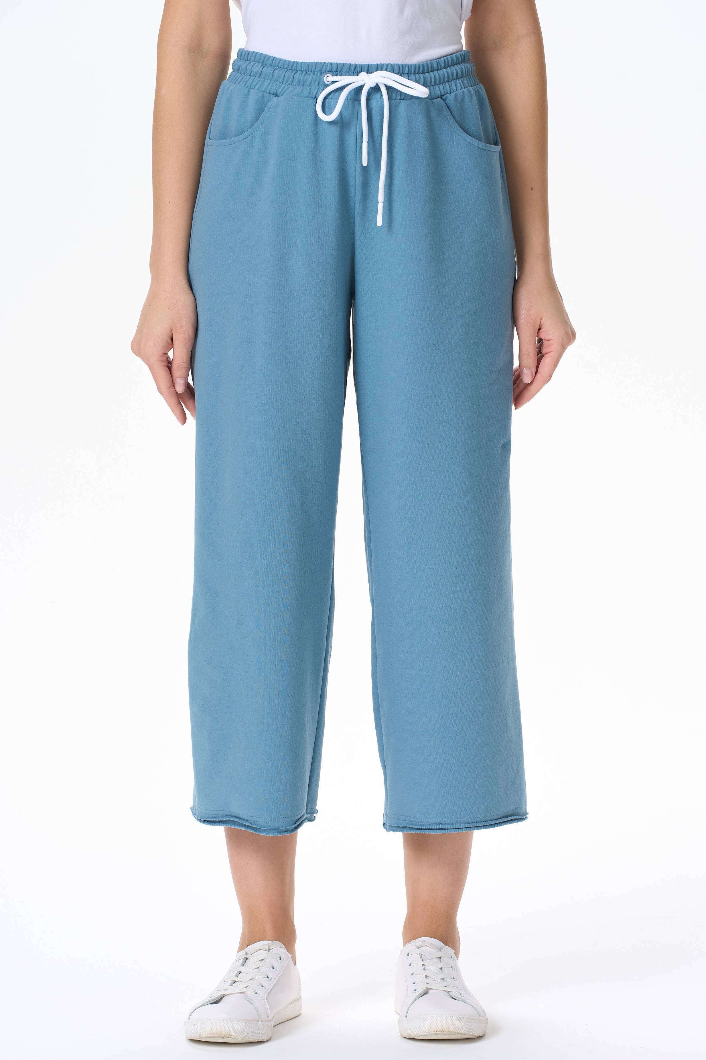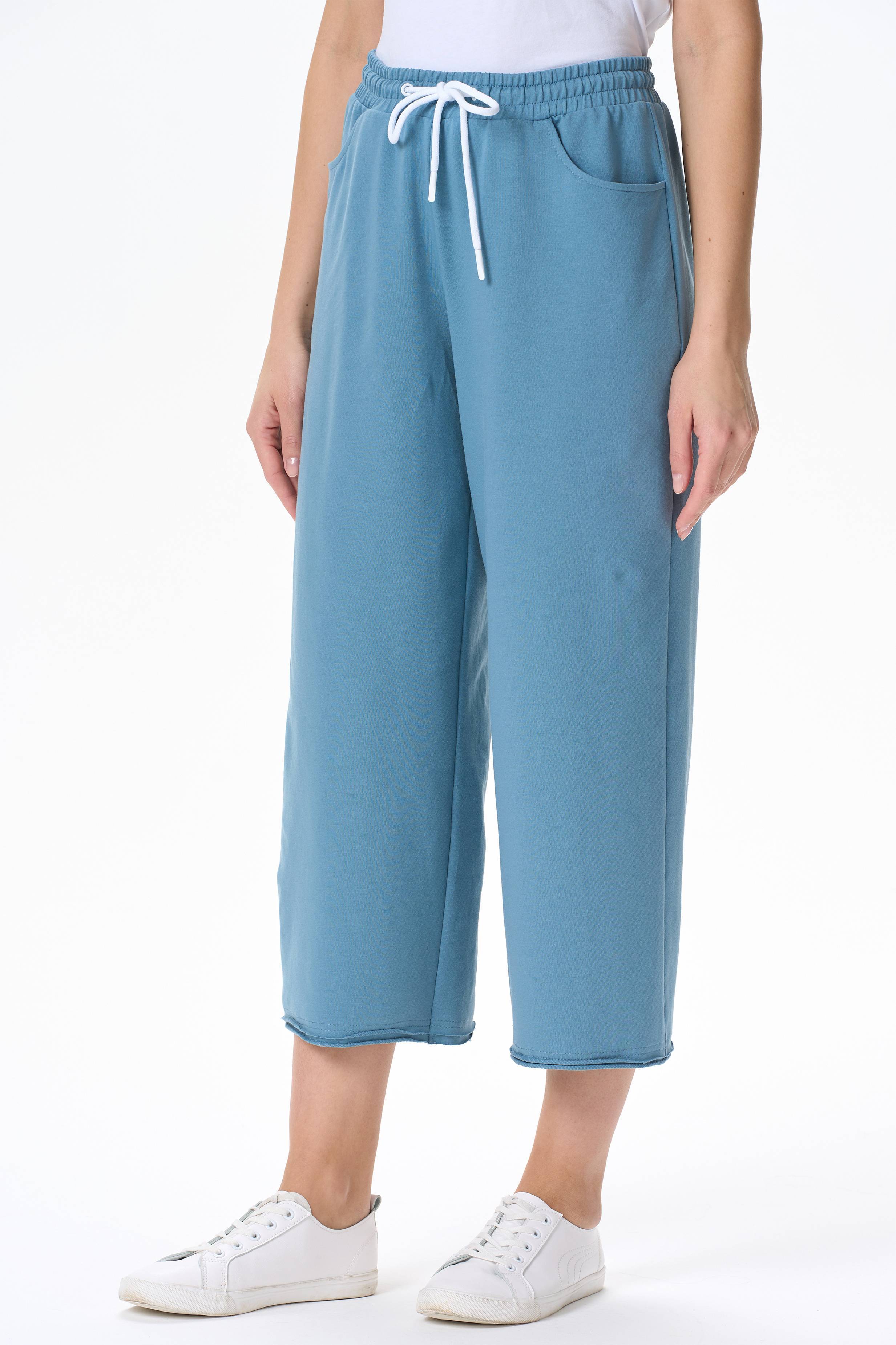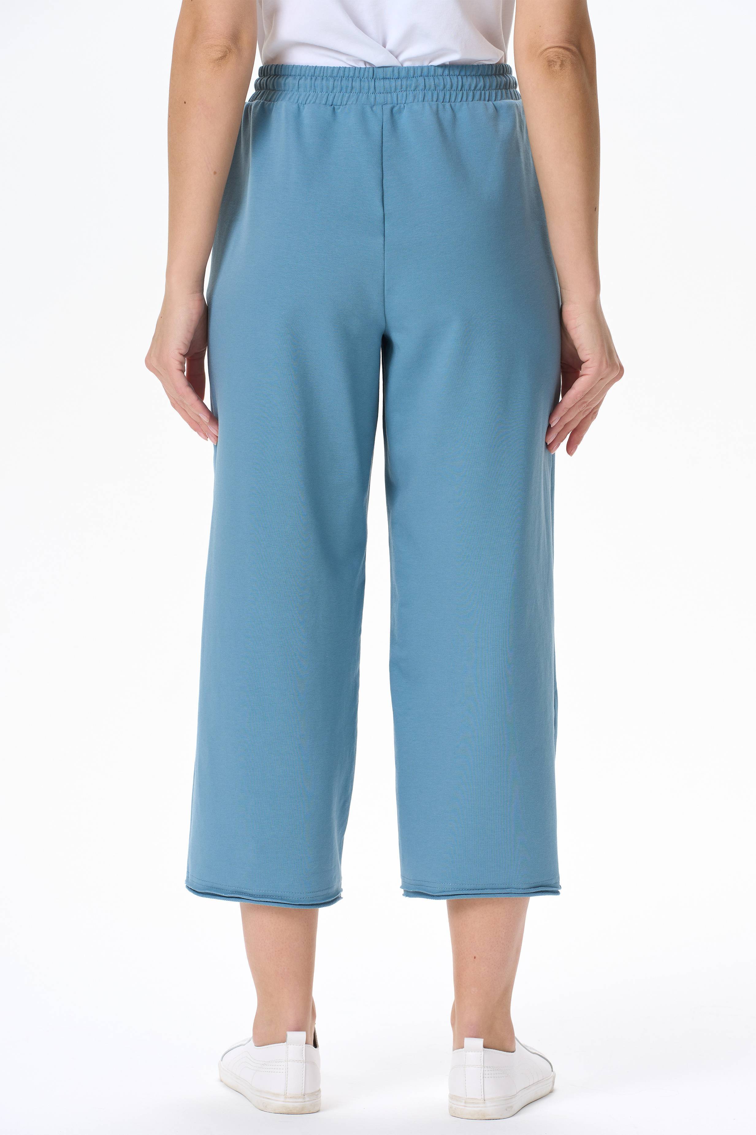 92% хлопок, 8% эластан Стильные кюлоты из хлопкового футера с эластаном без начеса на каждый день. В боковых швах фигурные карманы. Пояс с эластичной тесьмой внутри. Рост модели 175 см.