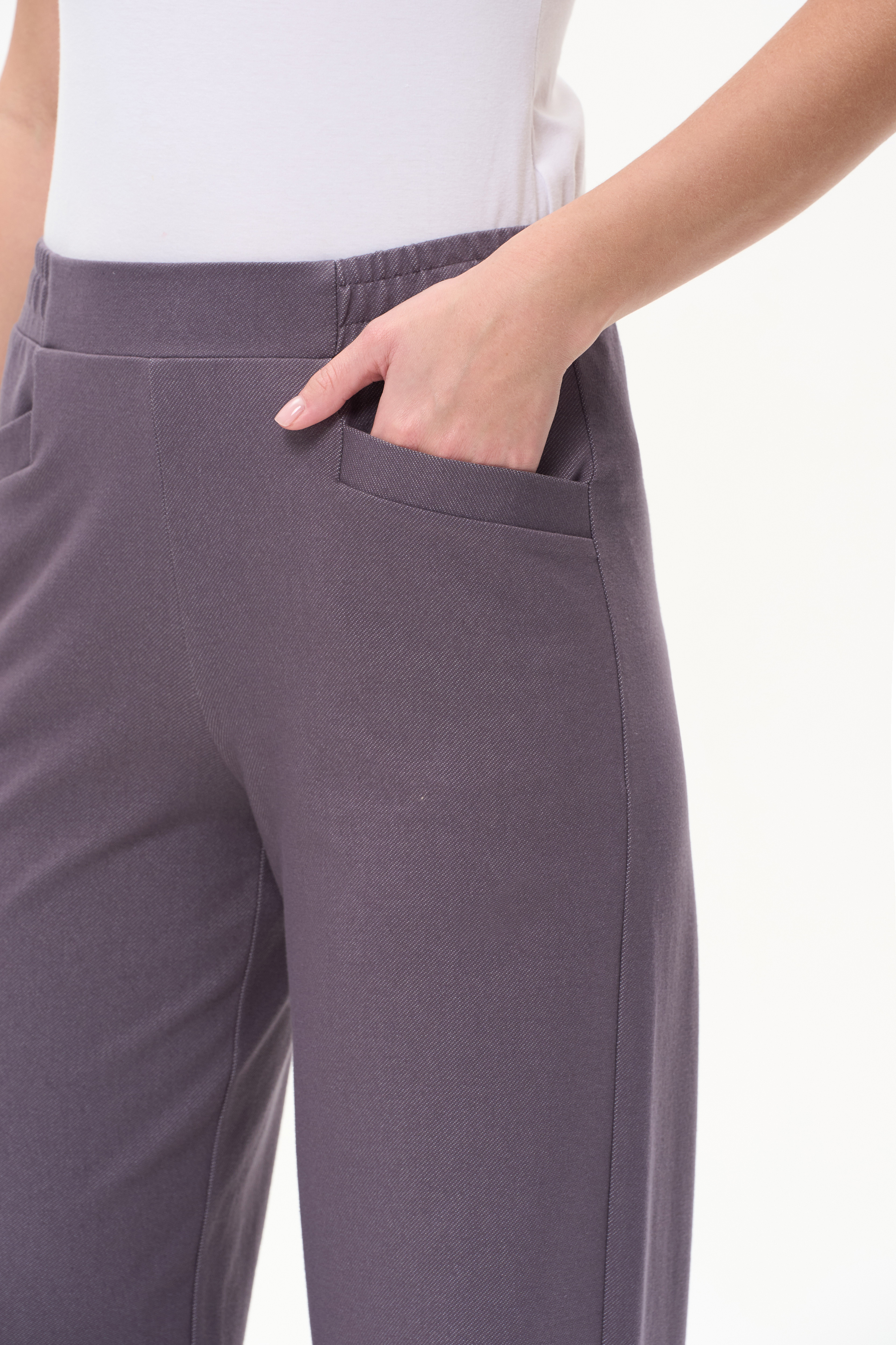 80% хлопок/ 14% полиэстер/ 6% эластан Прямые свободные брюки полной длины выполнены из джинскотта 240 гр Комфортная посадка, удобные карманы с листочкой, пояс с эластичной лентой внутри. Отличная модель для повседневных образов. Рост модели 175 см