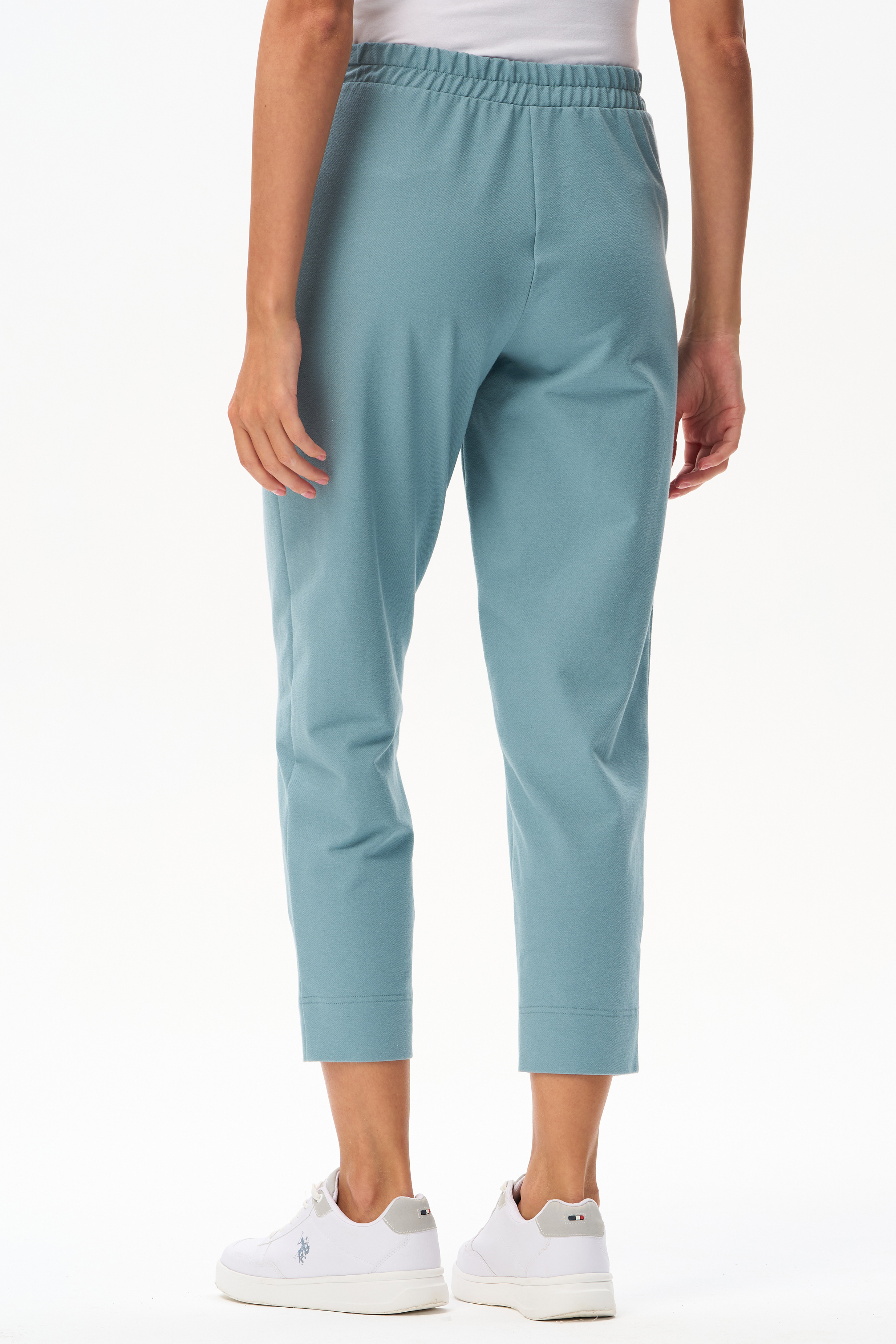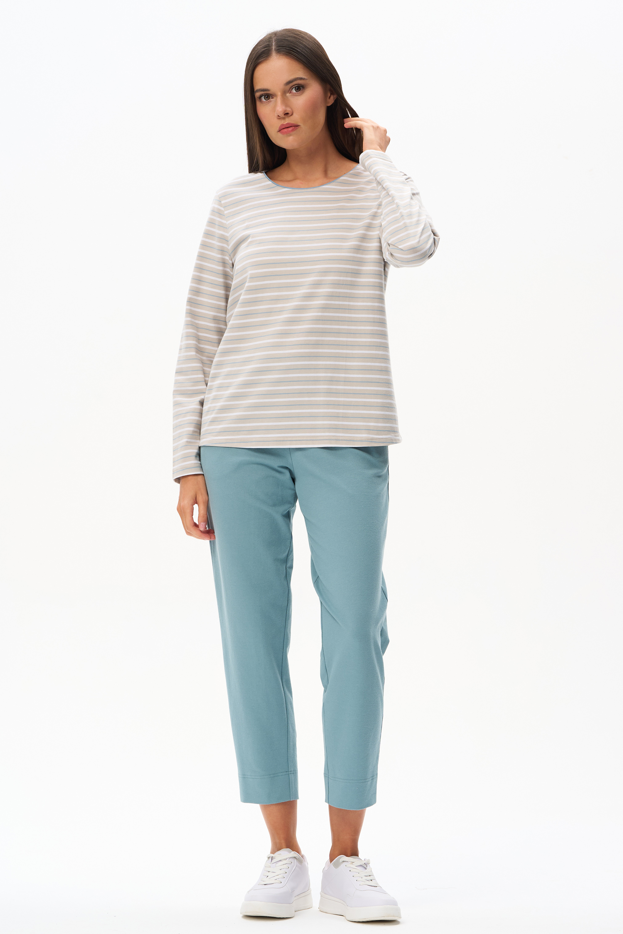 80% хлопок, 14% полиэстер, 6% эластан Укороченные свободные брюки из хлопковой трикотажной джинсы 240 гр в трендовом оттенке Голубой дельфиниум. Модель с классическими карманами, пояс с планкой и эластичной лентой внутри. Комфортная, универсальная модель для городских образов, отдыха и путешествий. Рост модели 175 см