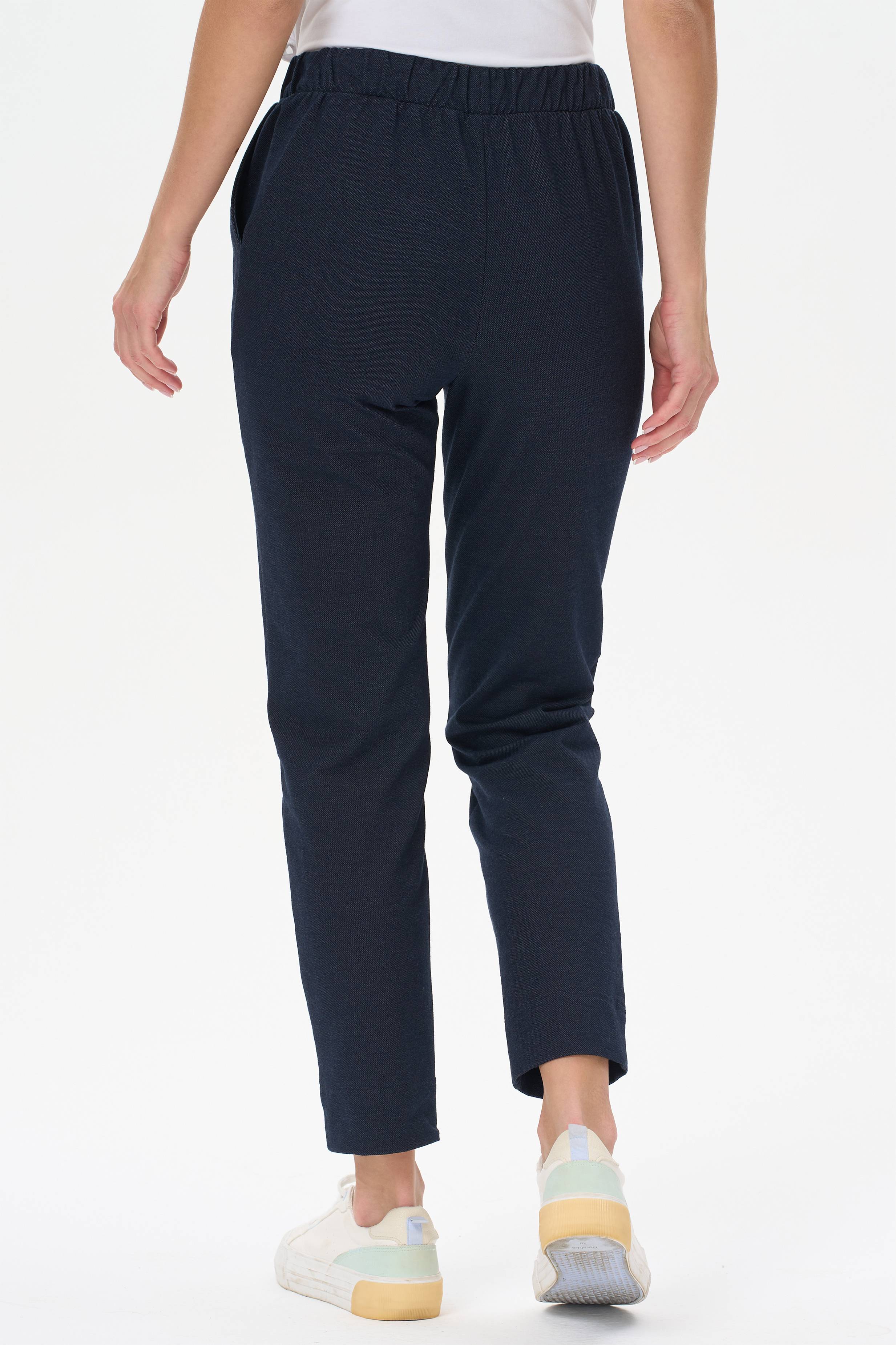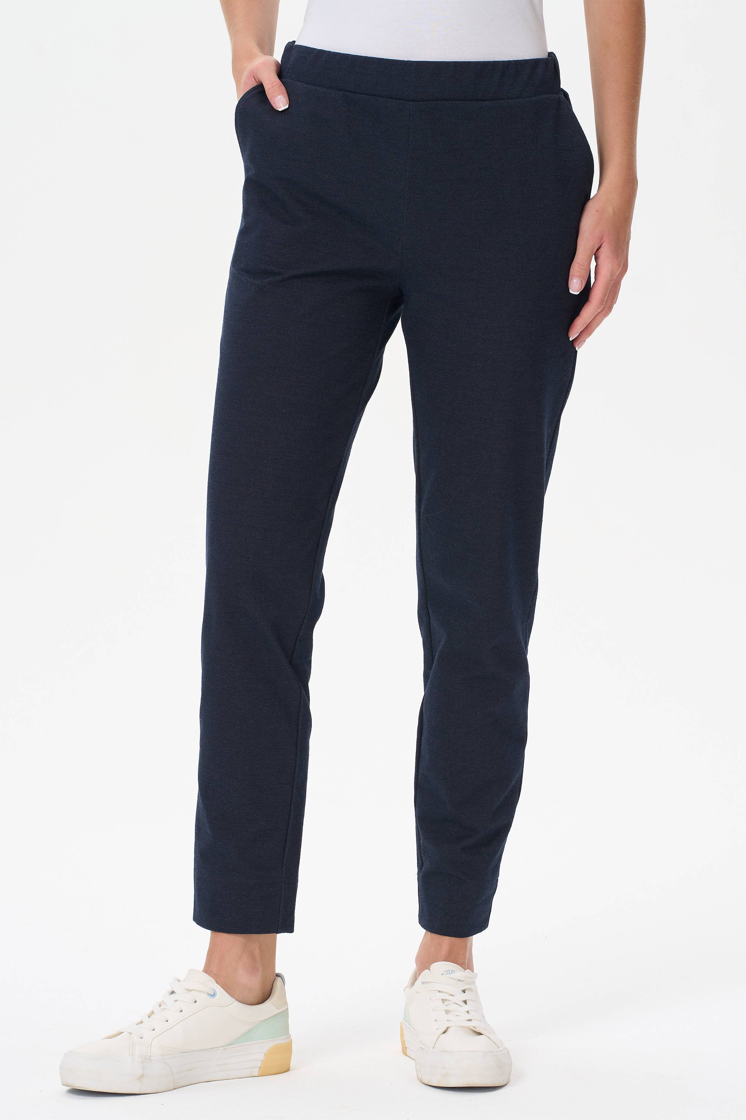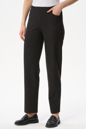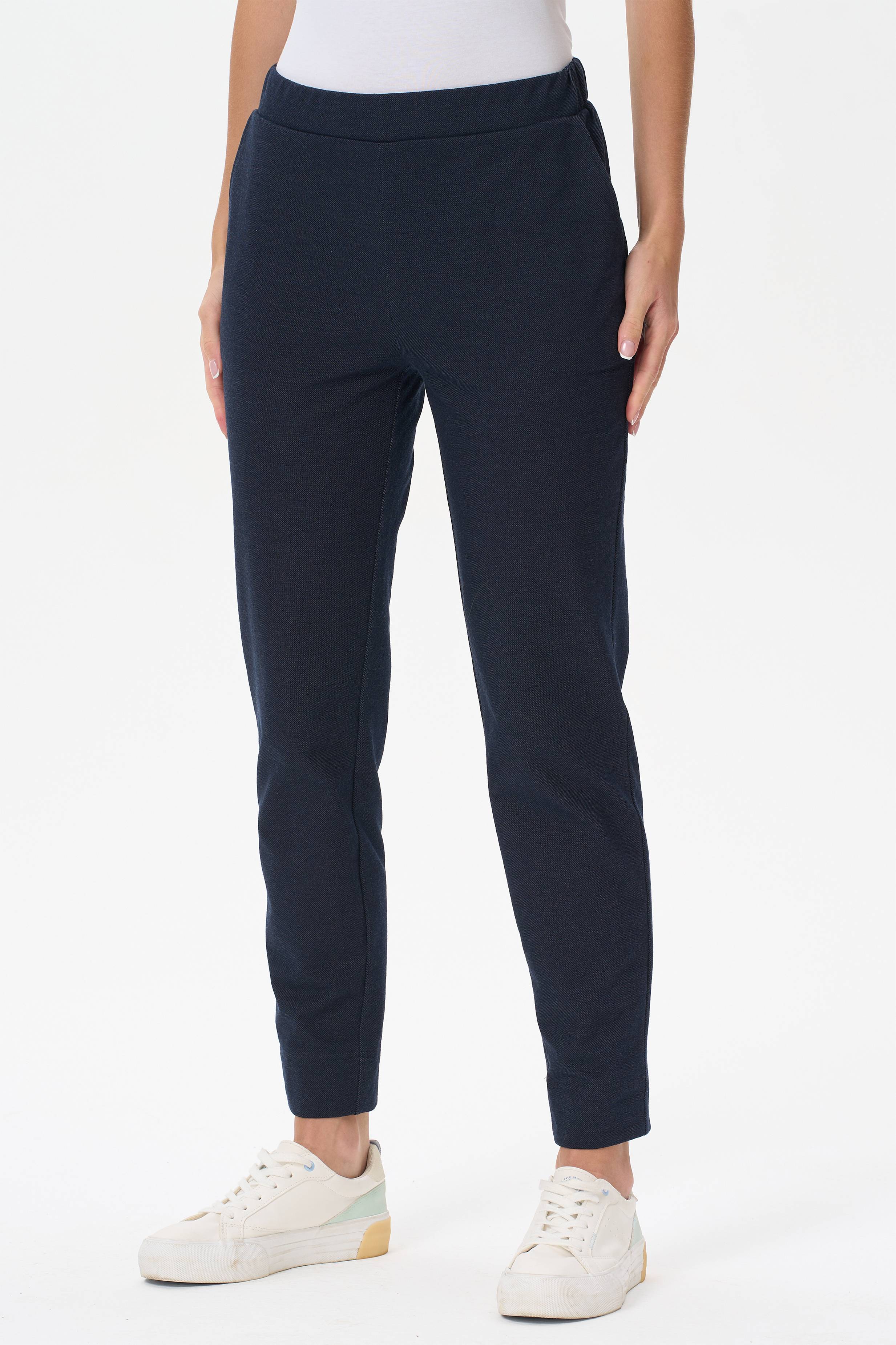 Длинные чуть зауженные брюки с карманами, из хлопкового полотна джинскотт с начесом. Пояс с планкой и эластичной тесьмой внутри. Длина по боковому шву в 44 размере - 94см. Рост модели на фото 177.