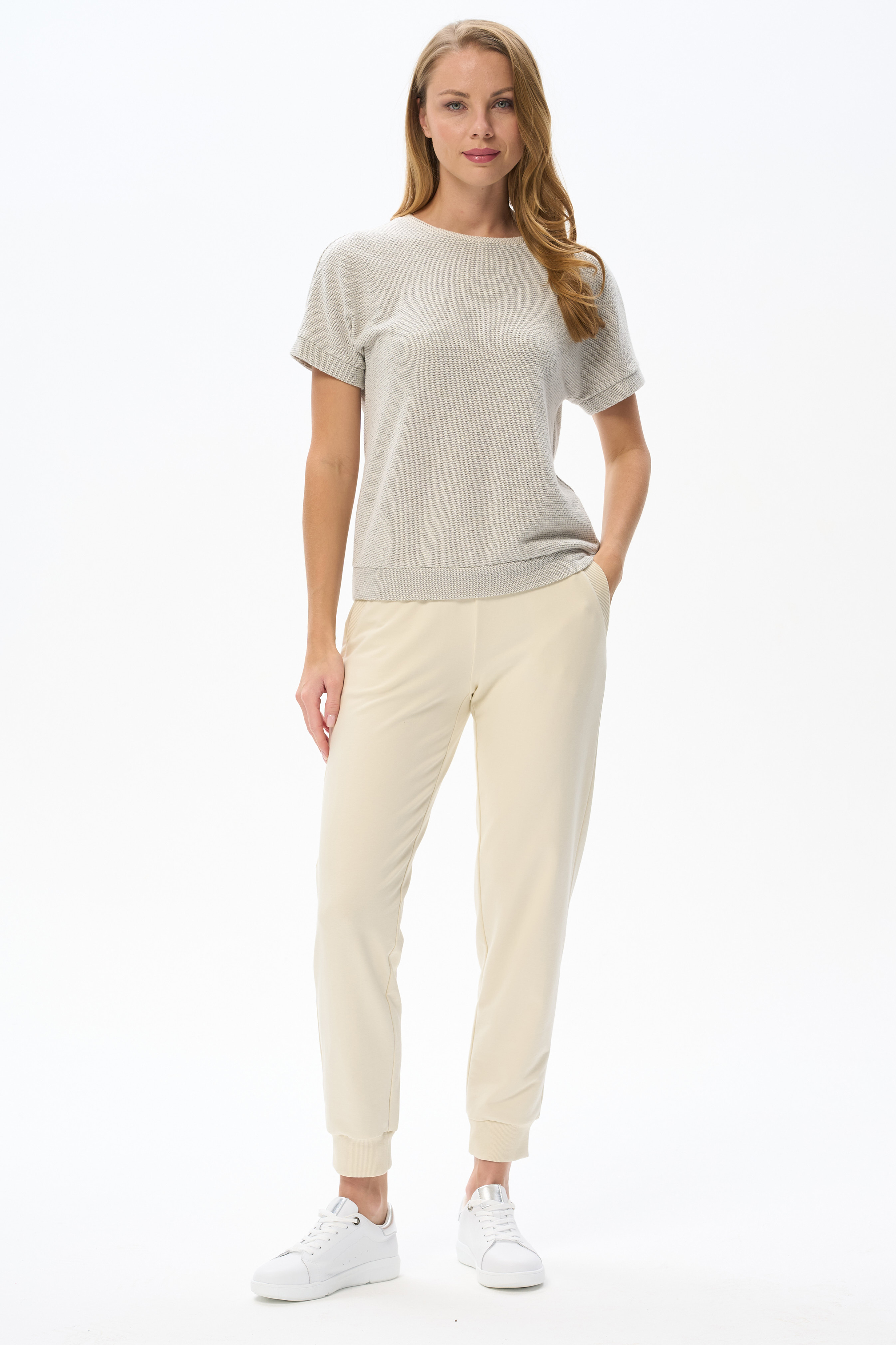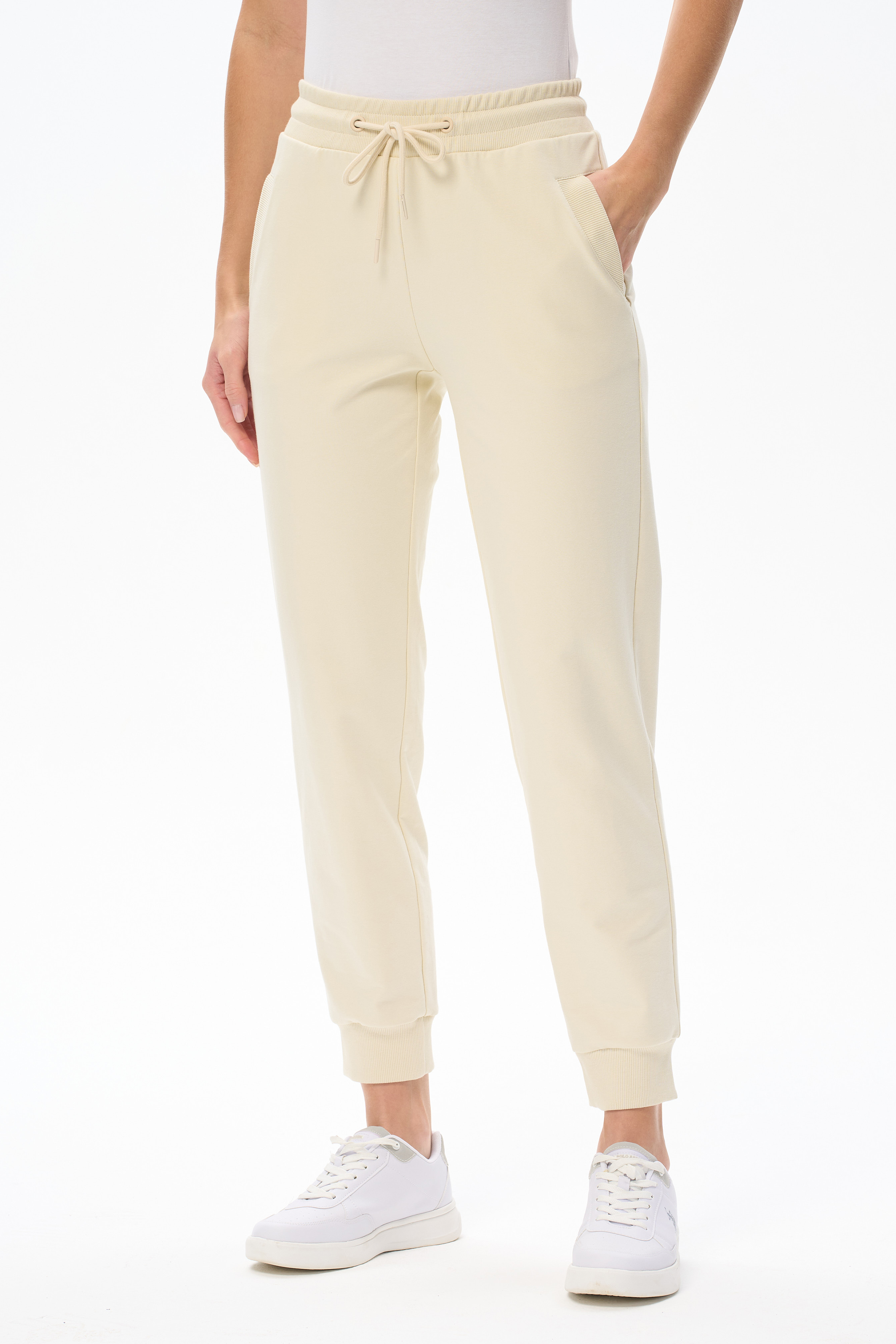 92% хлопок/ 8% эластан Стильные брюки с карманами из хлопкового футера высокого качества 2-х нитки. Эластичный пояс и манжеты по низу из кашкорсе. Длина по боку (без пояса с манжетой) 95 см. Рост модели на фото 178см.