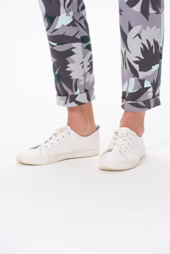 92% хлопок, 8% эластан Комфортные брюки с карманами, из хлопкового футера 2х нитки (без начеса). Пояс с планкой и эластичной тесьмой внутри. По низу брюк отвороты. Рост модели 175 см.