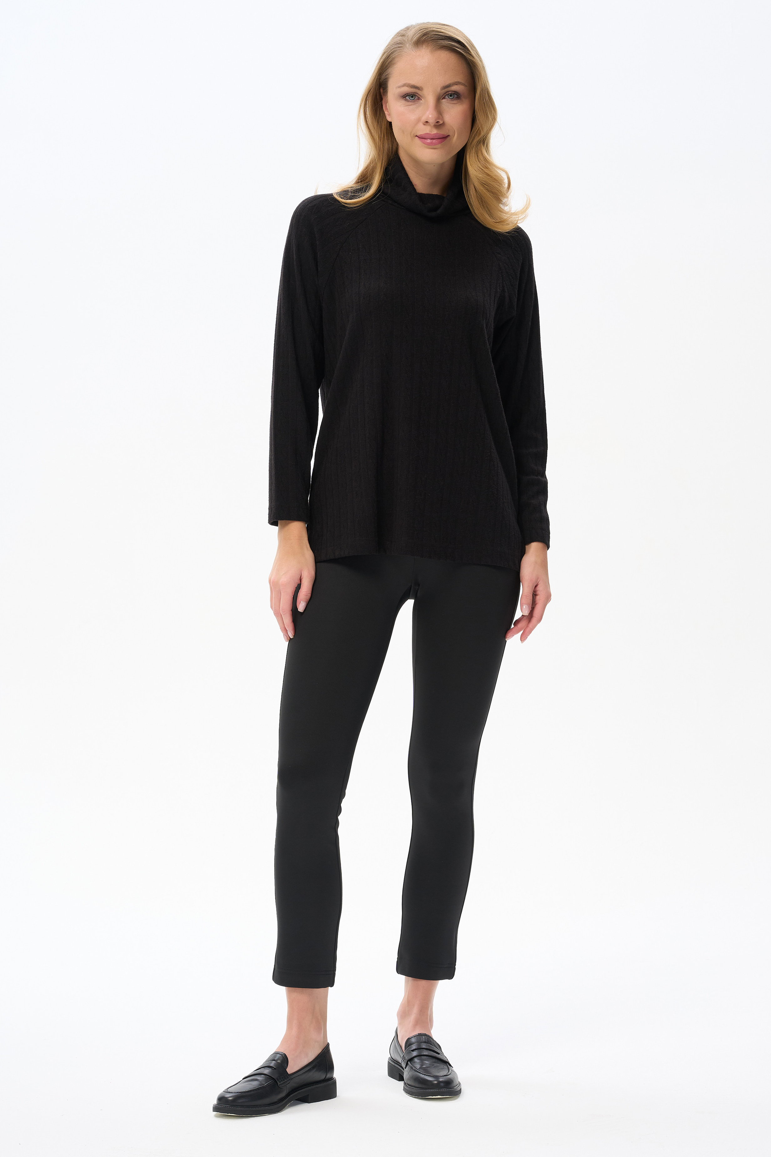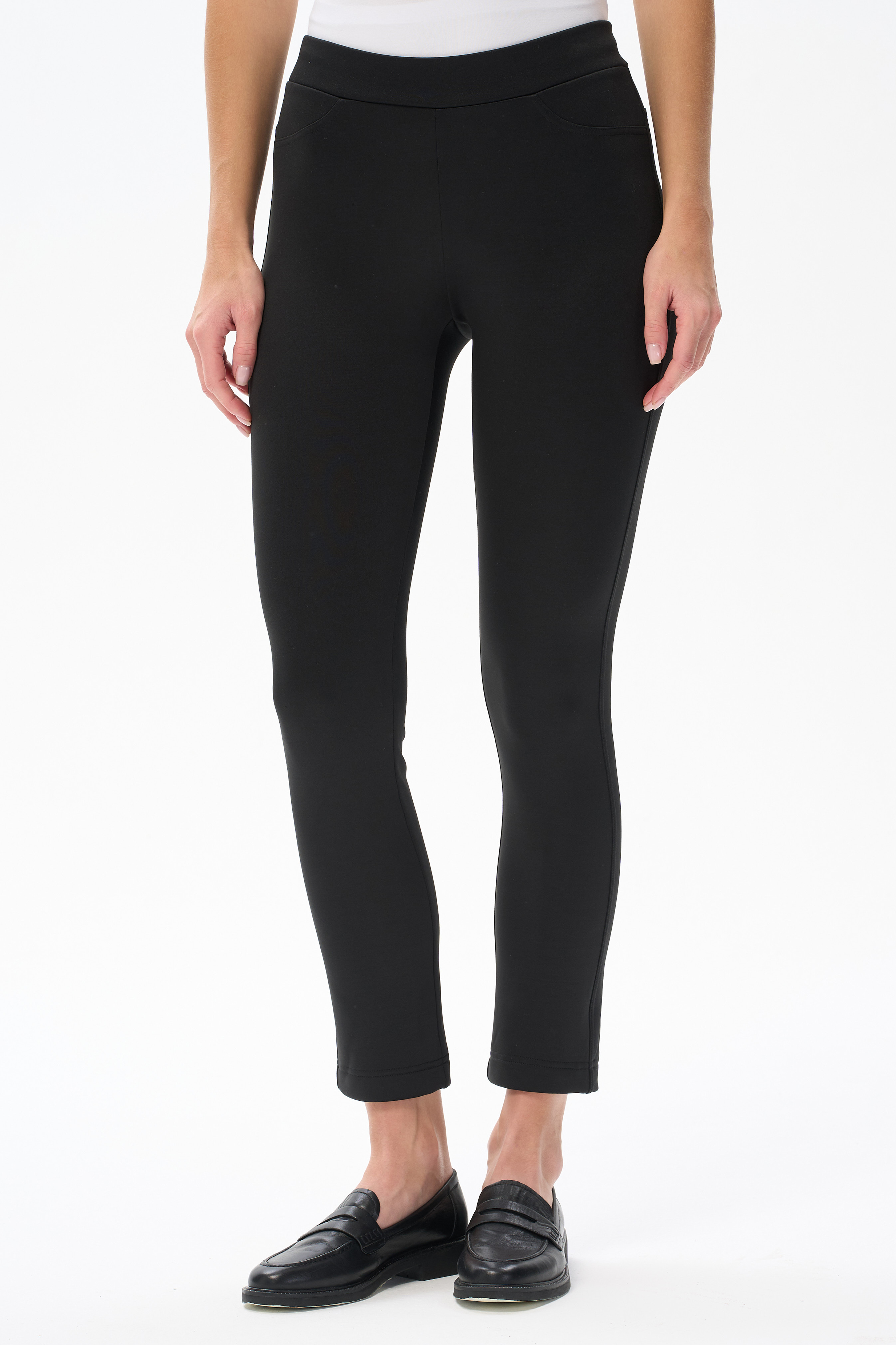Брюки--леггинсы - из полотна с модалом, изнанка которого имеет мягкийм начес. Благодаря кокетке на спинке, брюки идеально сидят на фигуре. Длина по боковому шву (без учета пояса) в 44 размере 92см. Рост модели на фото 178см.
