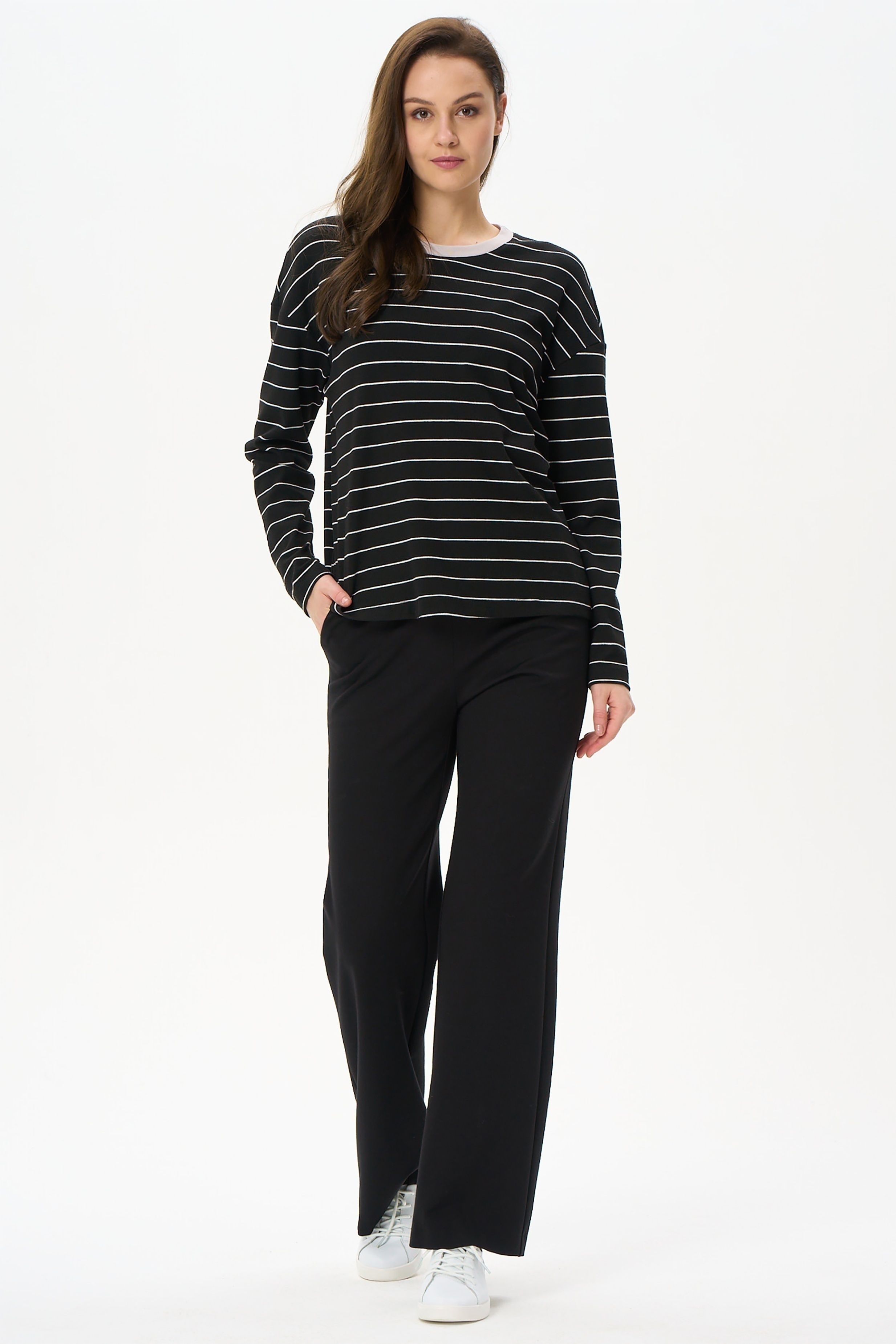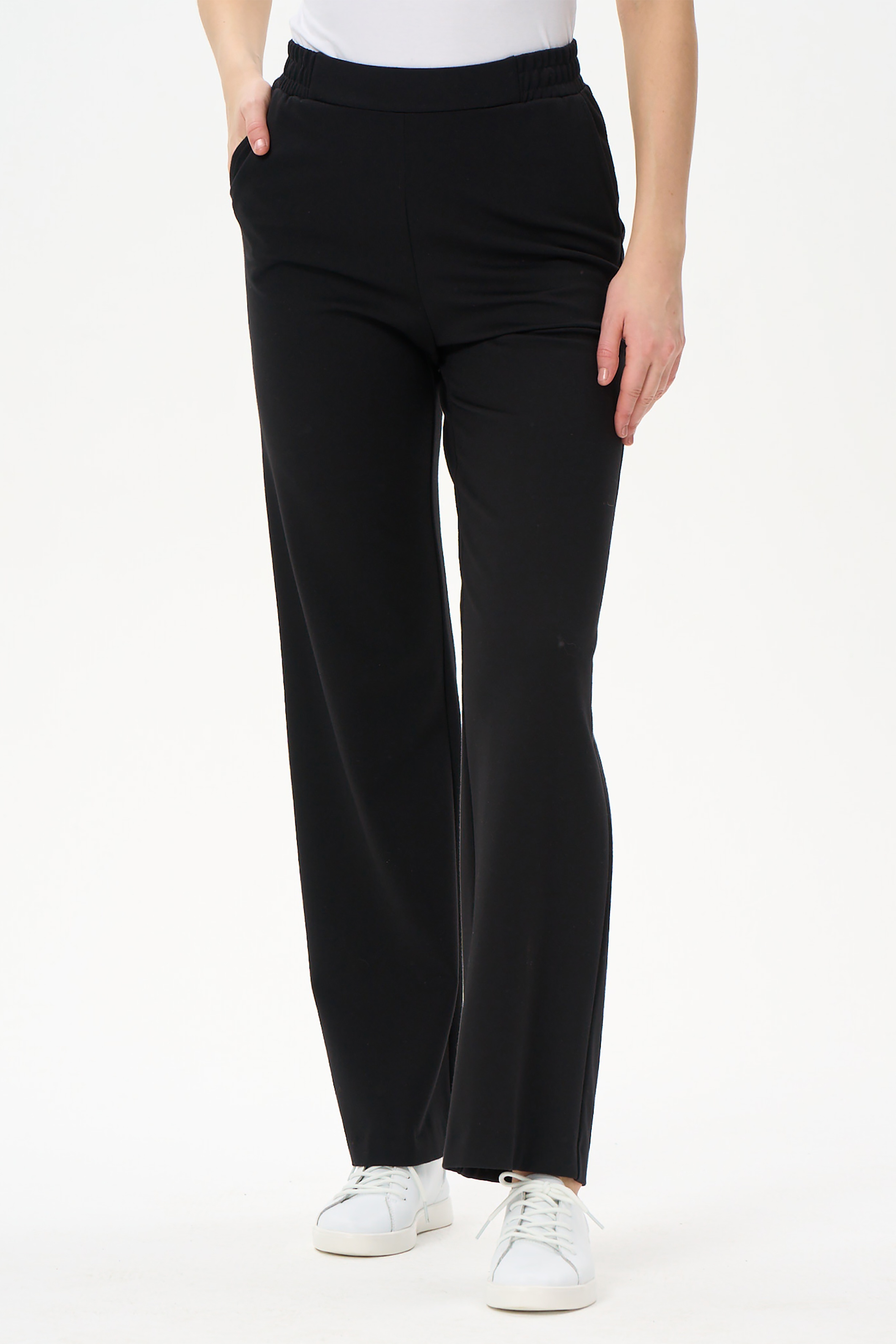 Широкие струящиеся брюки-Палаццо с карманами из вискозного джерси. Пояс с планкой и эластичной тесьмой внутри. Длина брюк по боковому шву в 44 размере - 103см. Рост модели на фото 177.