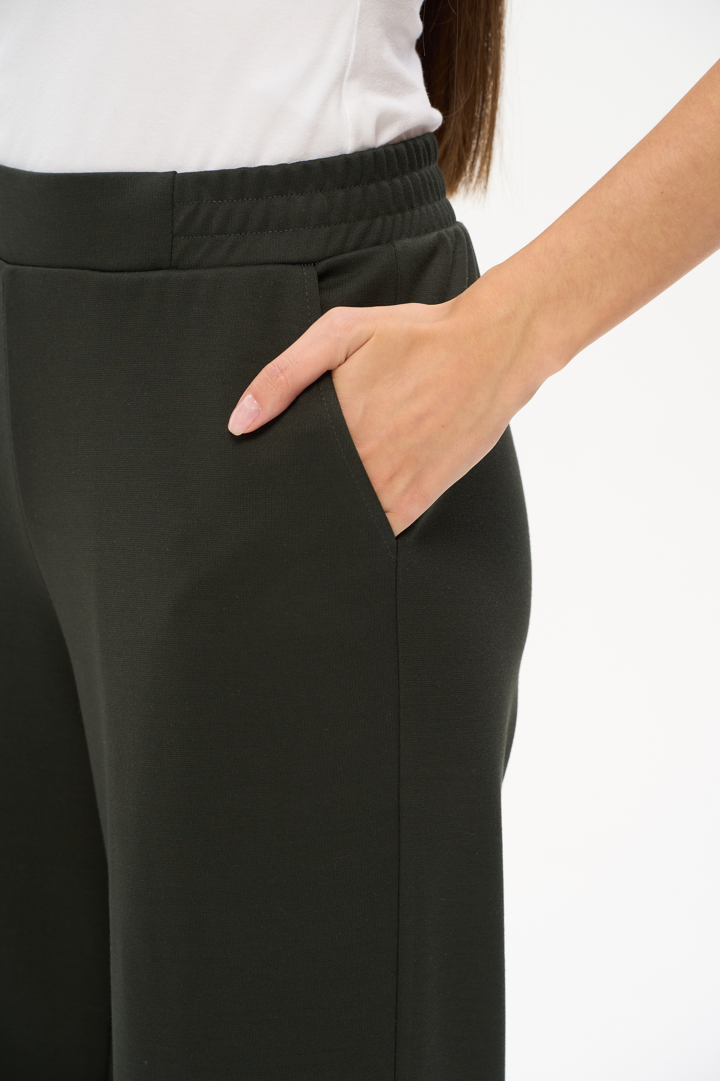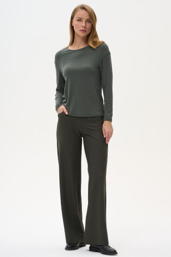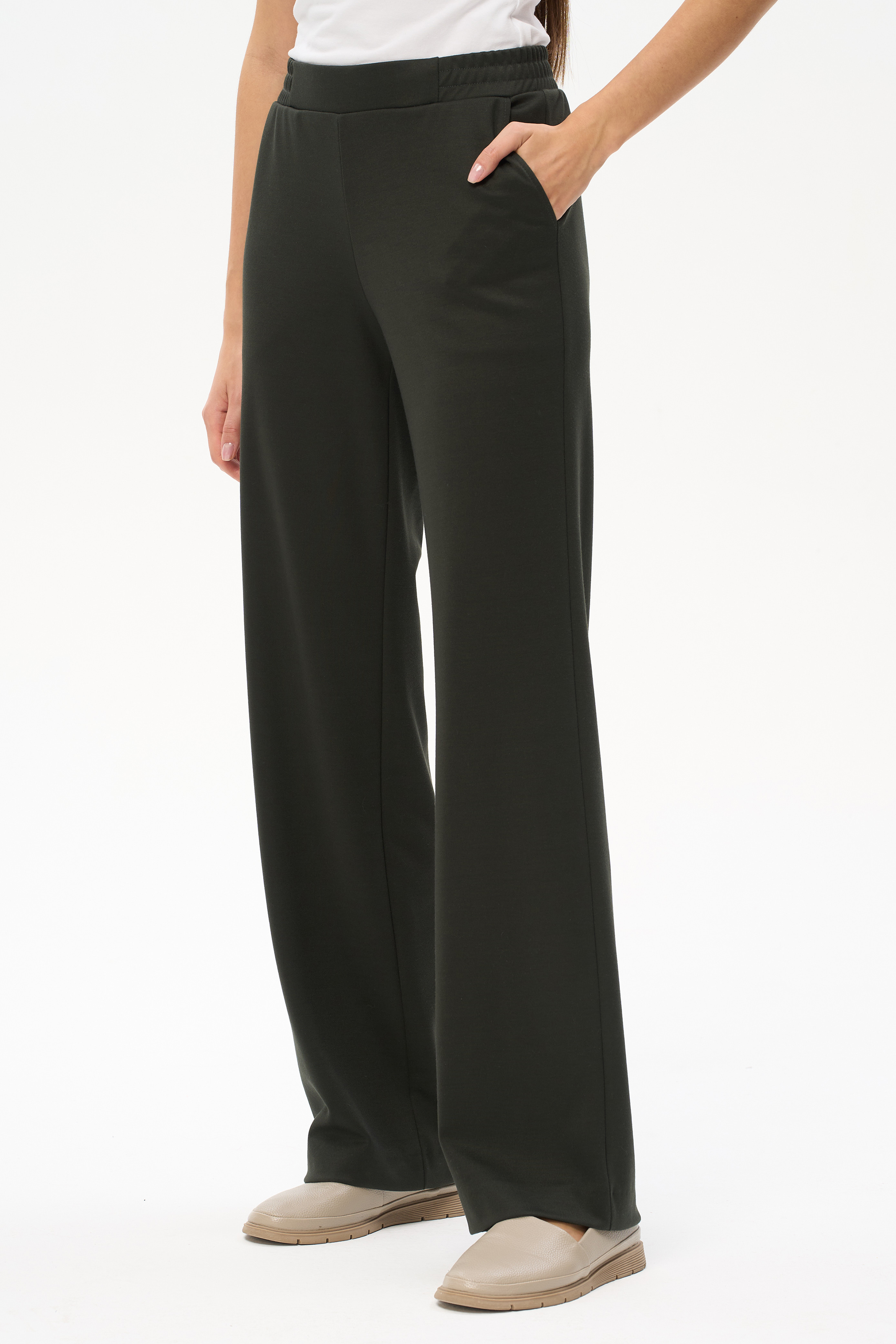 Широкие струящиеся брюки-Палаццо с карманами из вискозного джерси. Пояс с планкой и эластичной тесьмой внутри. Длина брюк по боковому шву в 44 размере - 103 см. Рост модели на фото 178 см.