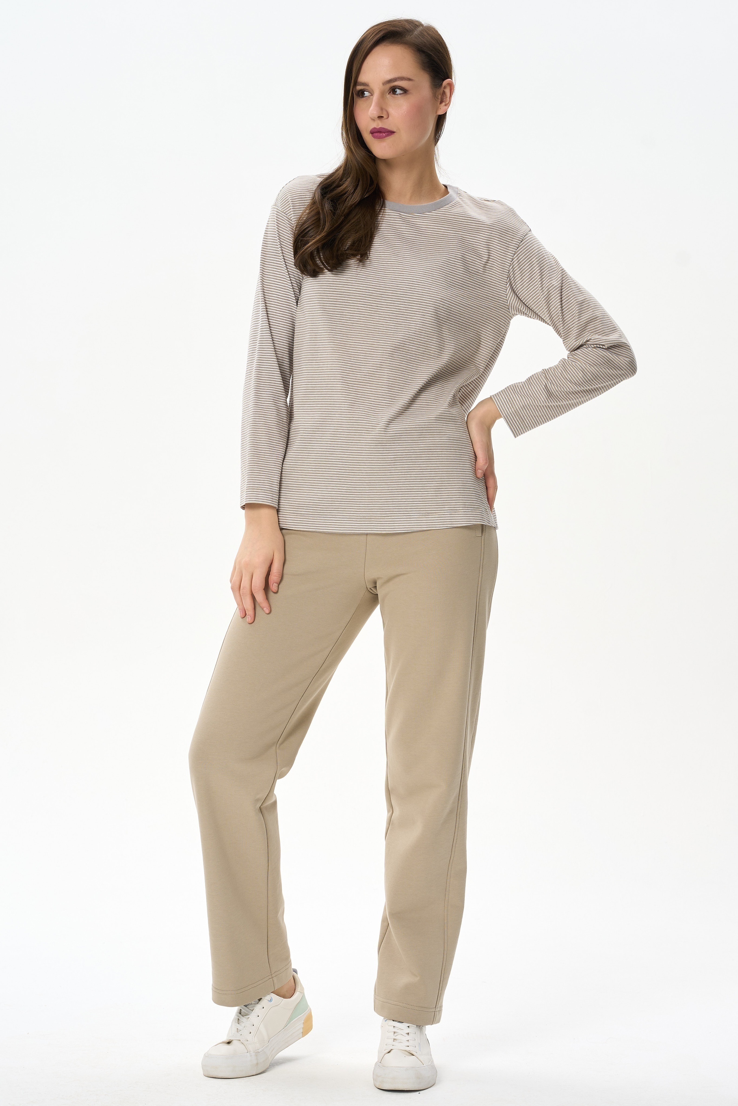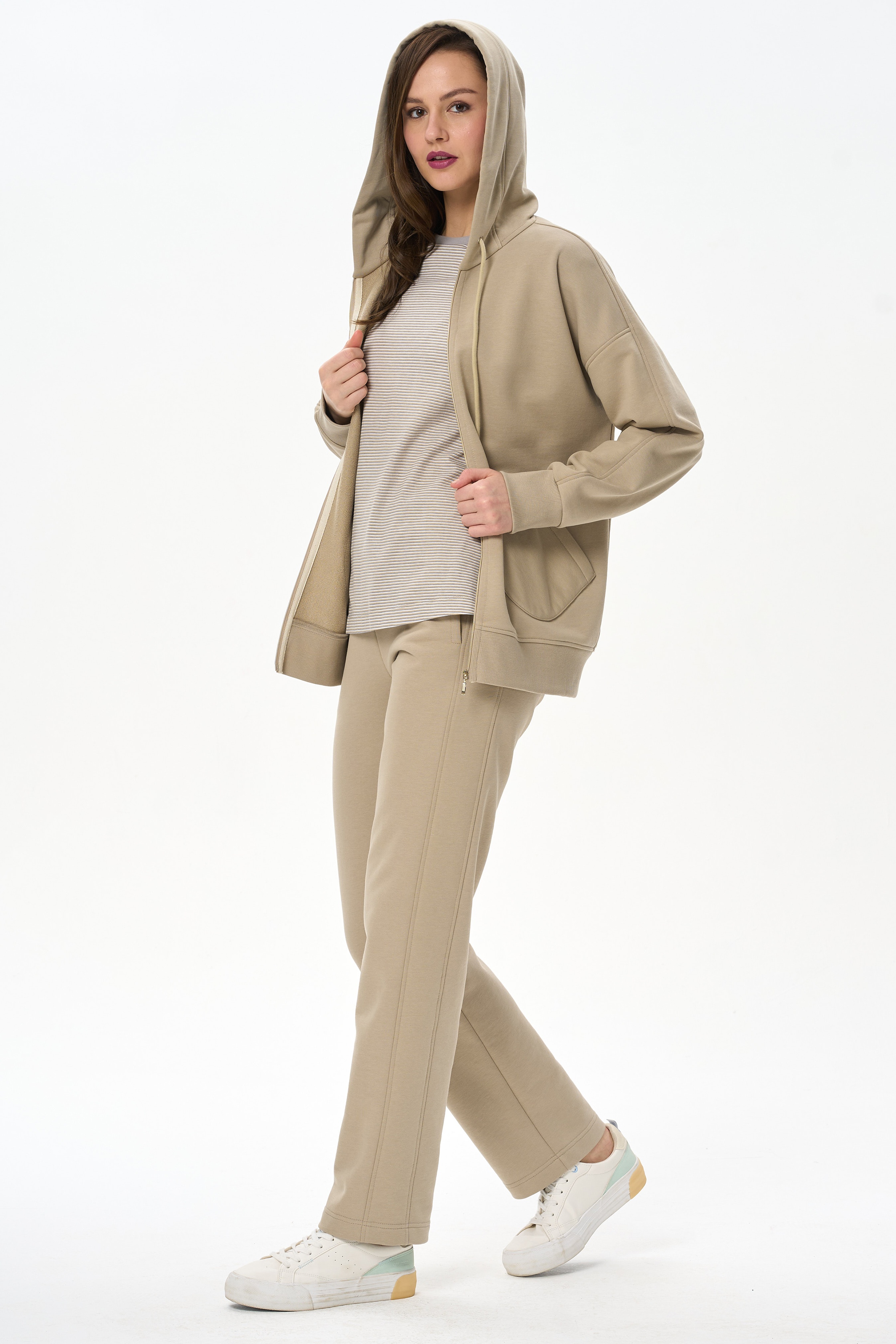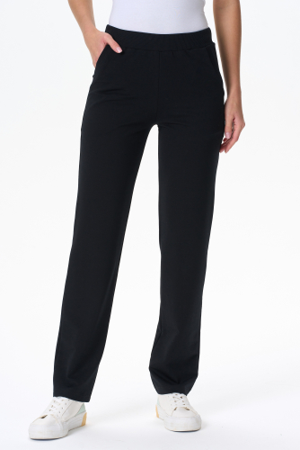 Брюки прямого силуэта с лампасами. Выполнены из плотного хлопкового футера 3-х нитки-петли с изнанки с устойчивым рубчиком. Брюки с карманами в рельефных швах. Длина по боковому шву в 44 размере - 102см. Рост модели на фото 178 см.