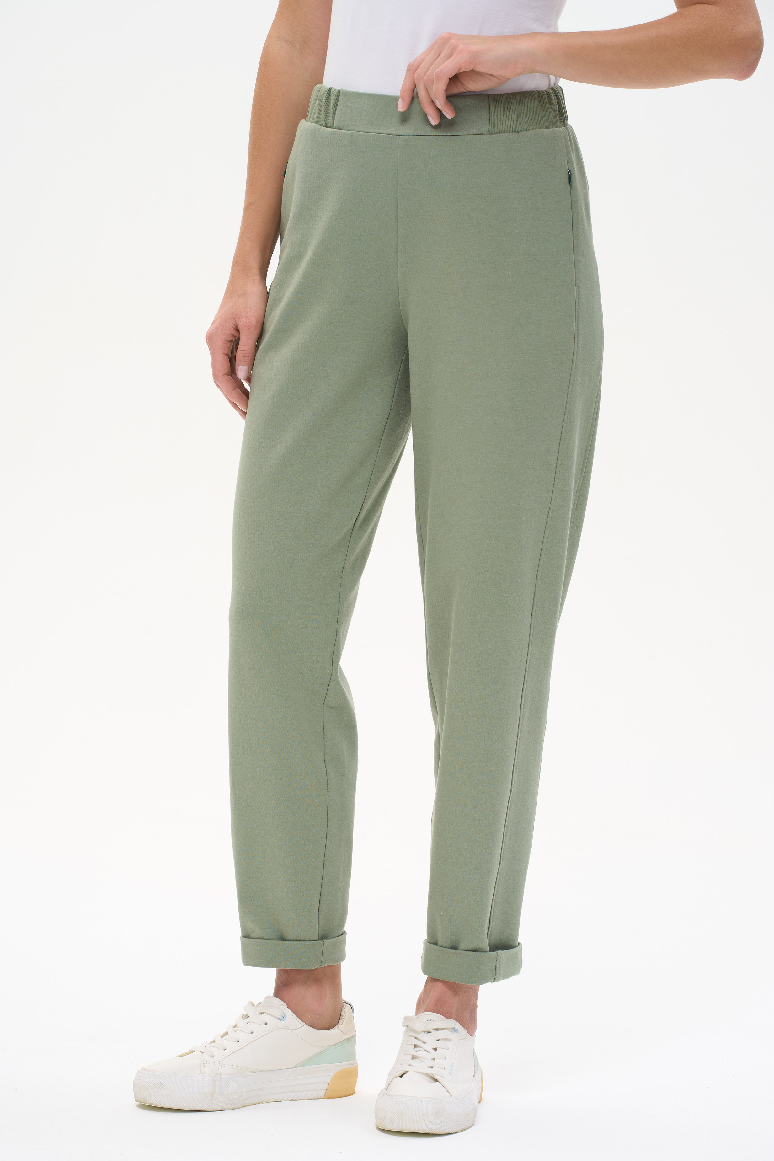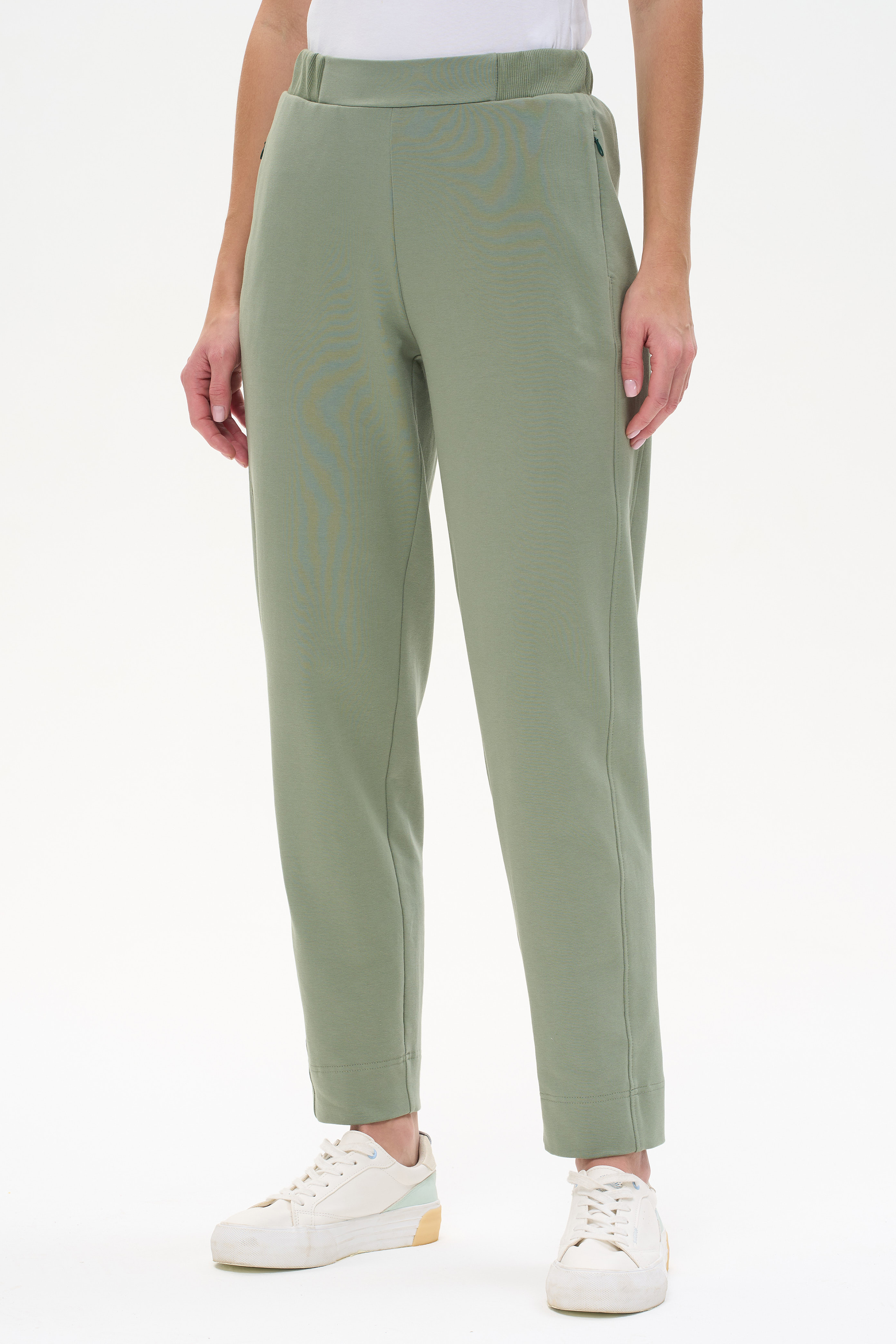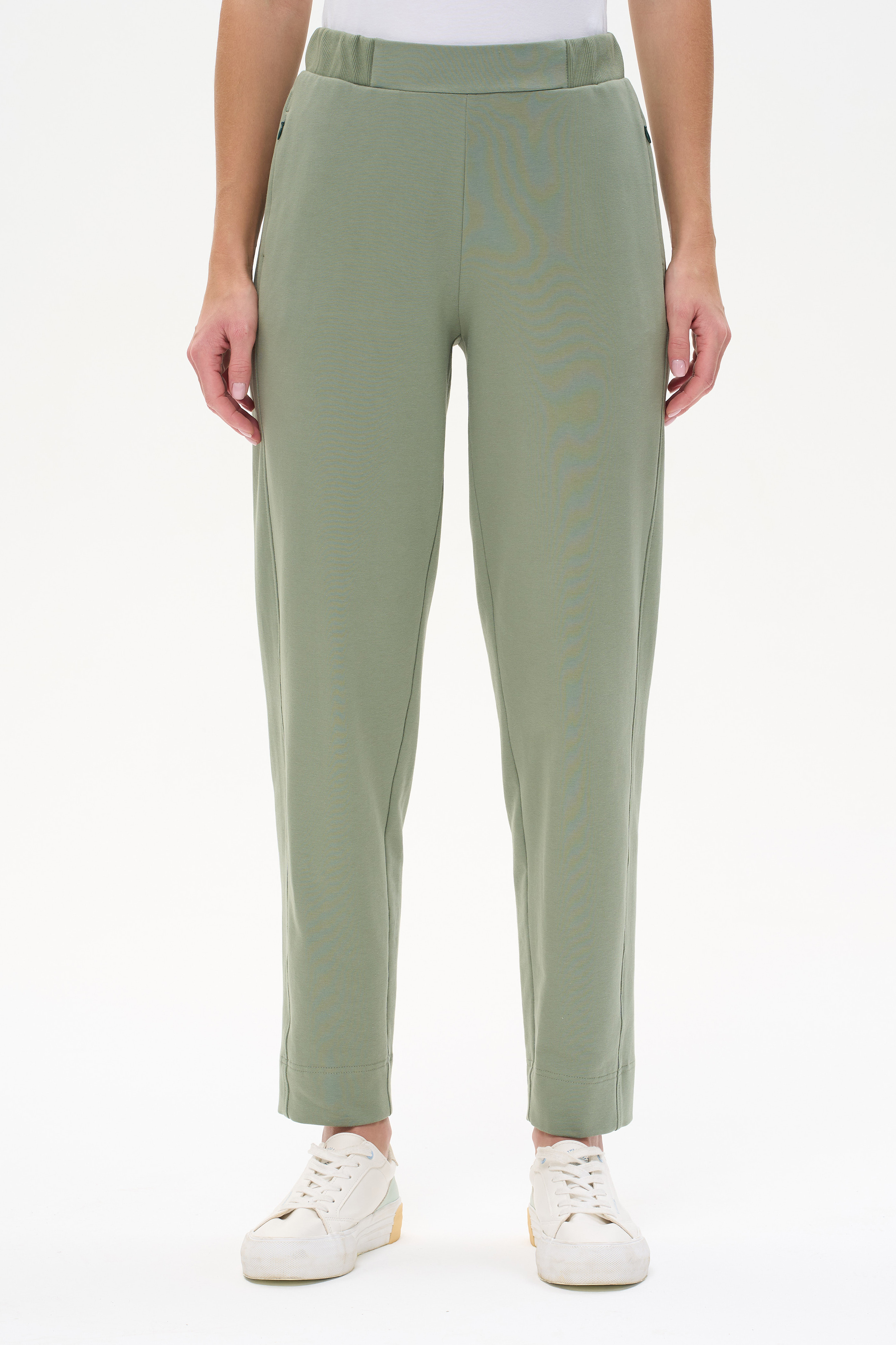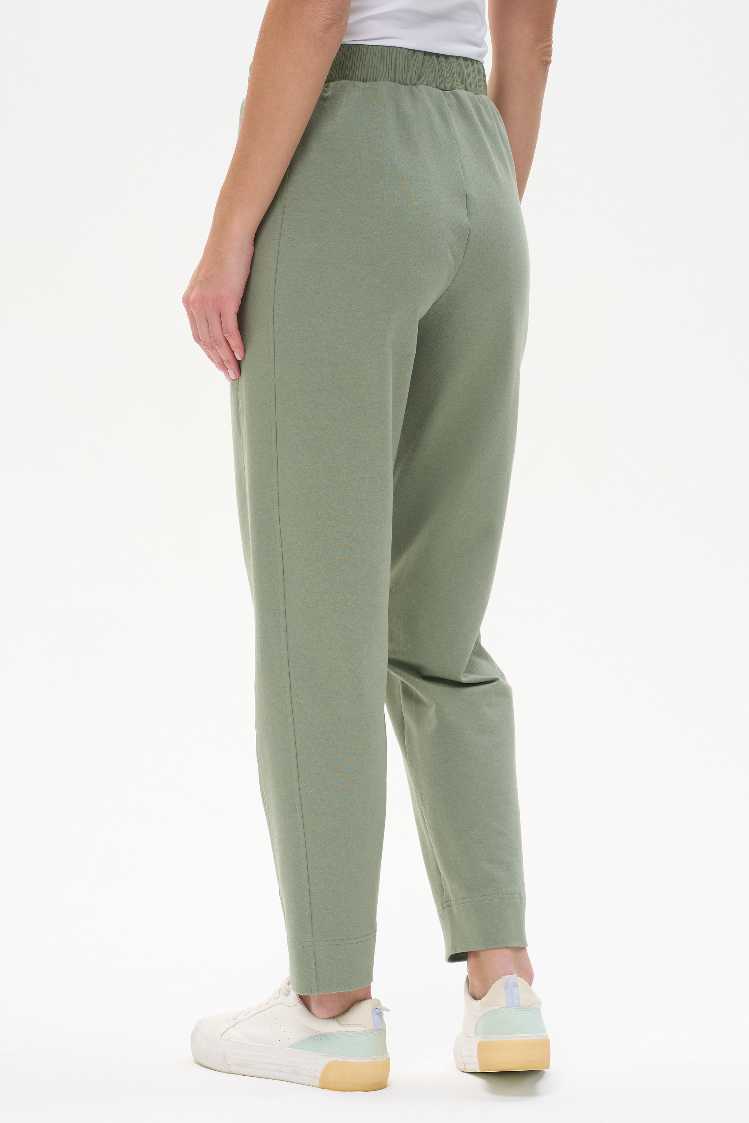 92% хлопок, 8% эластан Брюки-бананы с рельефными вставками. Выполнены из футера 2-х нитки с эластаном. Пояс с эластичной тесьмой. В рельефных швах карманы с потайной молнией. Длина по боковому шву в 44 размере 100см. Рост модели на фото 178см.