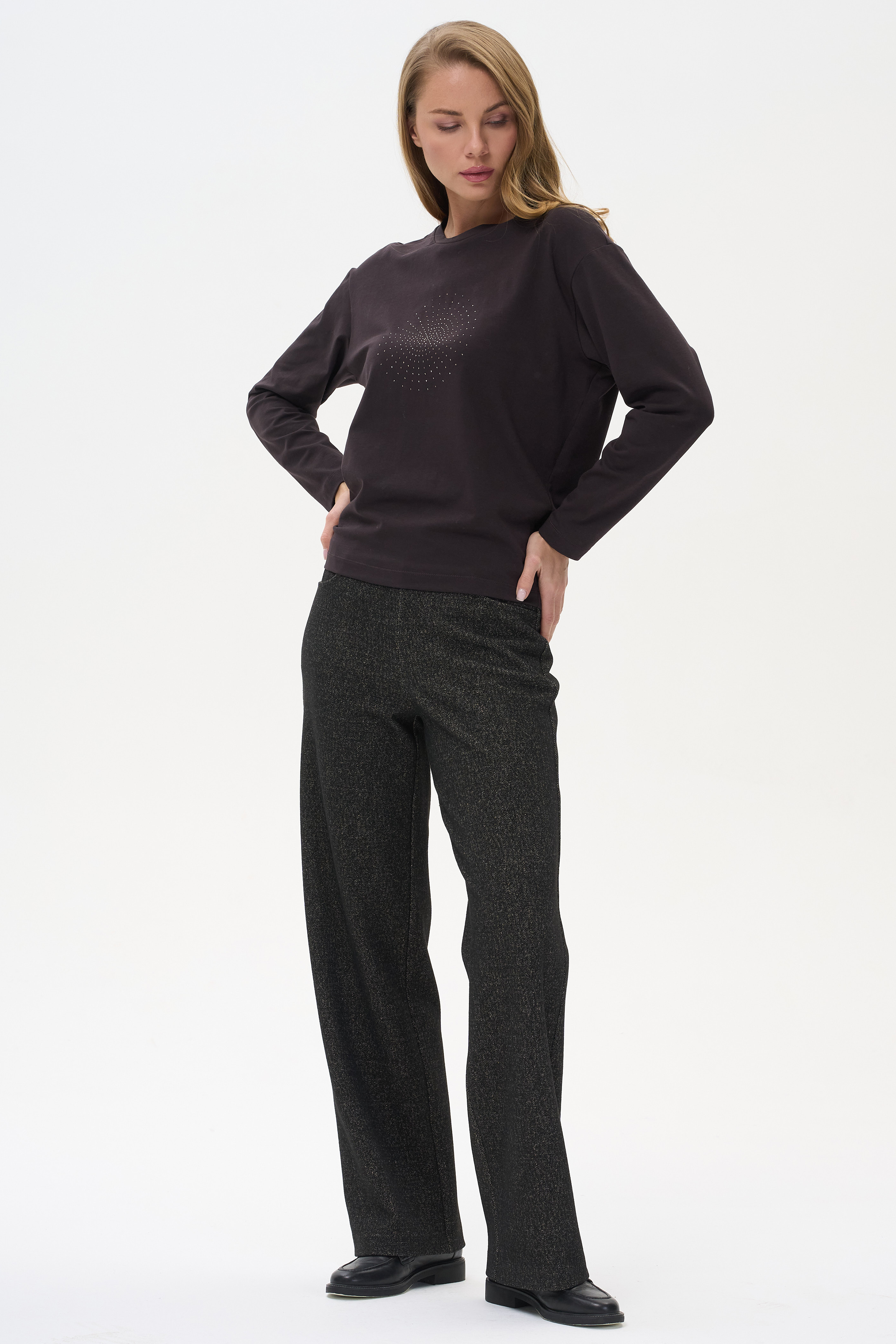 Широкие брюки-Палаццо с карманами, выполнены из плотного жаккардового трикотажного полотна.