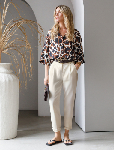 В реальности брюки имеют более широкие штанины внизу, что утяжеляет весь образ. Но в целом качество пошива и ткани достойные