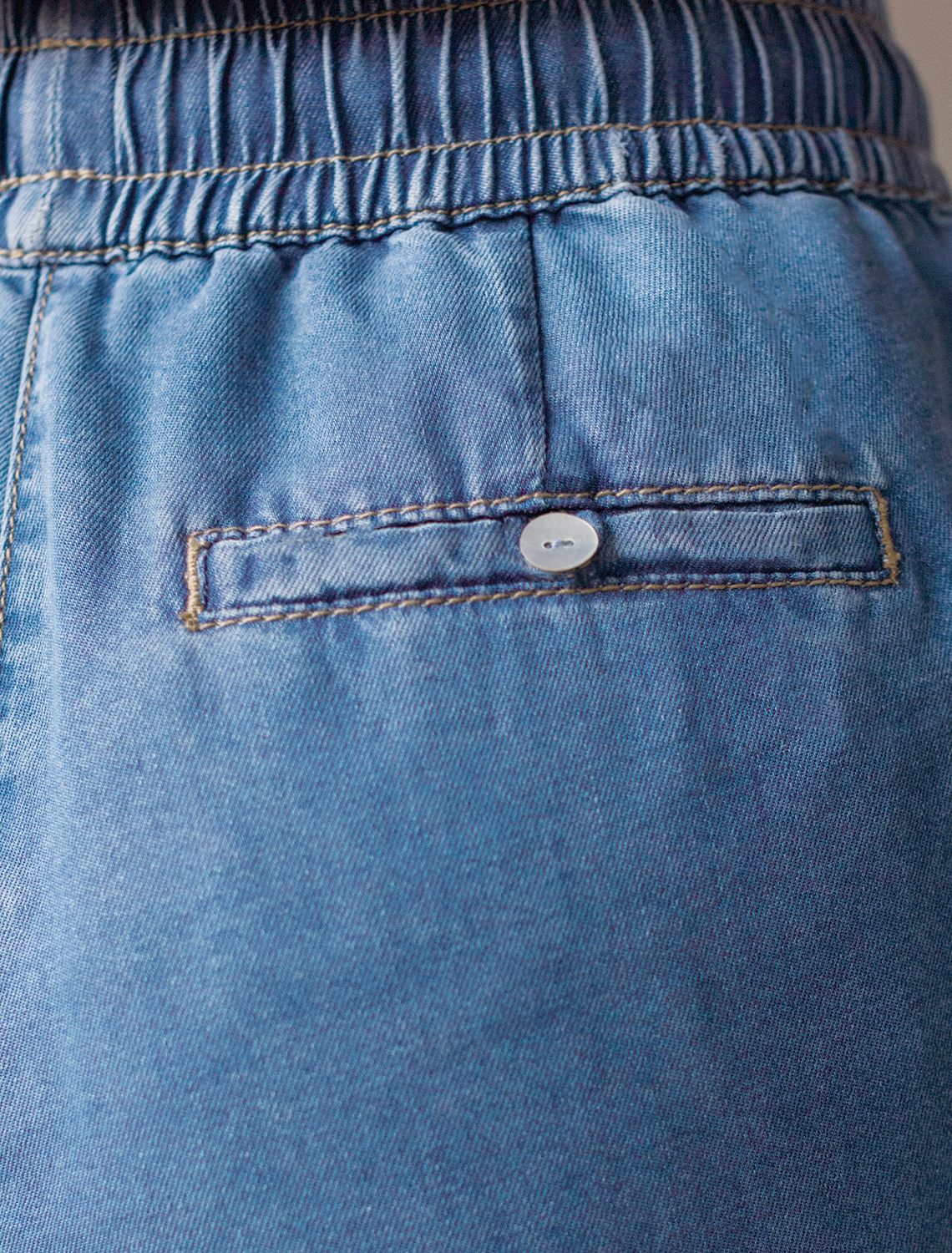 Брюки бананы с поясом на резинке из джинсового лиоцелла D54.257 светло-синий
