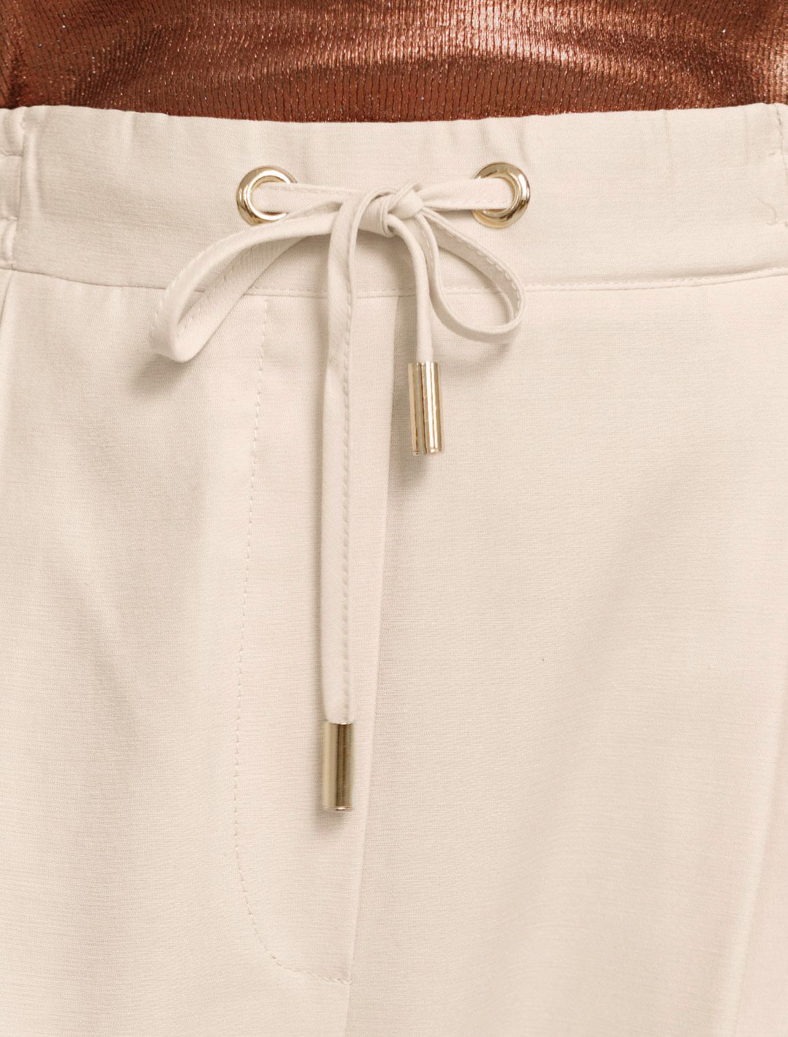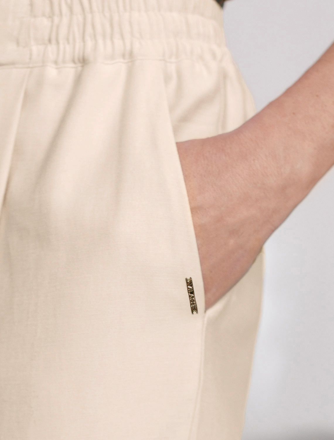 Брюки бананы с поясом на резинке из плотного лиоцелла D24.311 кокосово-молочный