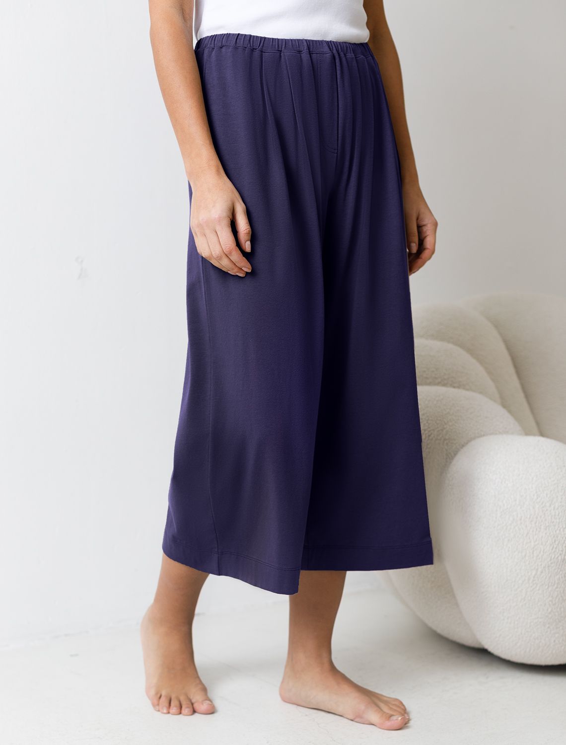 Комфортные укороченные широкие брюки кюлоты темно-синего цвета на тонкой резинке из 100% хлопка – отличный выбор для отдыха и домашней носки. Эти свободные брюки обеспечивают максимальную свободу движений благодаря широкому крою. Эластичная резинка в области талии гарантирует удобную посадку и индивидуальное прилегание по фигуре. Защипы добавляют выразительность образу и помогают сформировать актуальный силуэт, подчеркивая современные тенденции.Тонкая хлопковая ткань пропускает воздух, создавая ощущение легкости и свежести в теплую и жаркую погоду. Повседневные брюки подходят для больших размеров, мягко скроют возможные недостатки фигуры, подчеркивая комфорт и стиль. Домашние брюки кюлоты отлично сочетаются с разными вариантами верхней одежды, поэтому их можно носить не только дома, но и на прогулках. Удобные брюки созданы для тех, кто ценит комфорт и практичность без лишних деталей. Благодаря свободному крою и натуральному материалу штаны идеально подходят для повседневного использования. Эти брюки не сковывают движение и обеспечивают комфорт на протяжении всего дня, что делает их незаменимыми в гардеробе.
